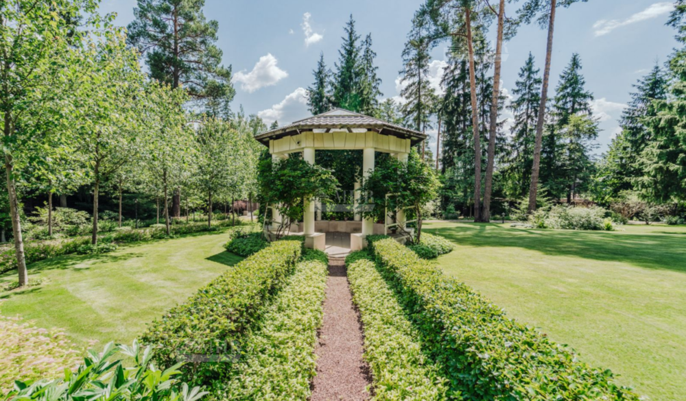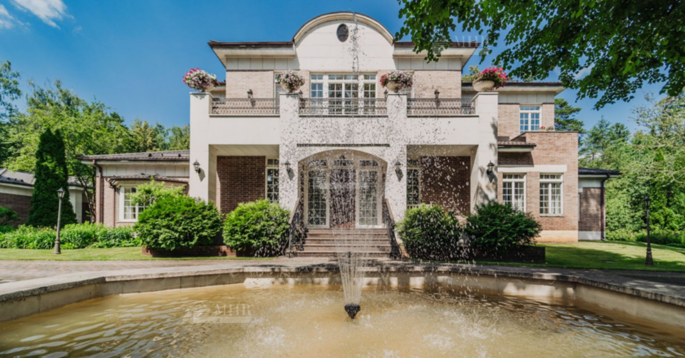 Предлагаем к покупке английский особняк с фонтаном на лесном участке.
