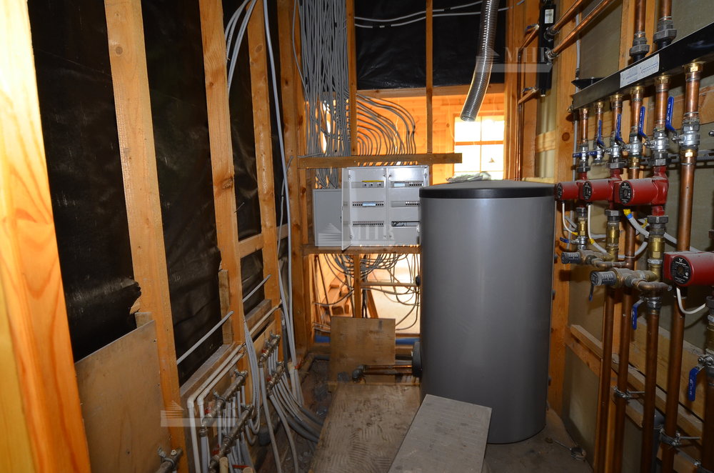 1 этаж: Холл, котельная, с/узел, гостевая спальня с ванной комнатой, детская, кабинет, гостиная со вторым светом, кухня-столовая с выходом на террасу, холл.