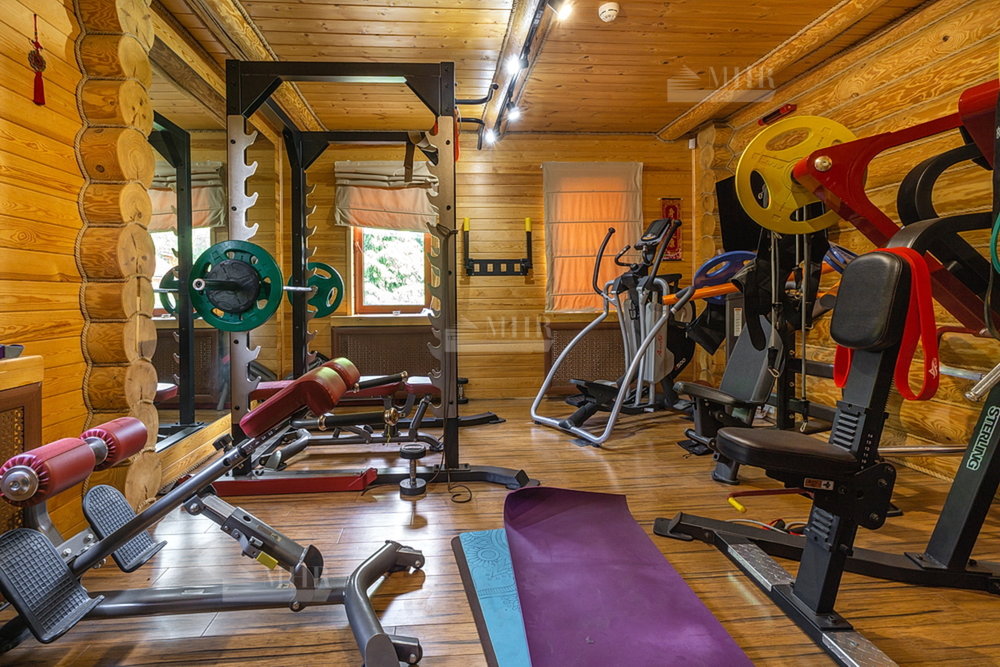 1 этаж: сауна с джакузи, постирочная со стиральной и сушильной машиной, несколькими холодильниками и зонами хранения, гостиная зона, спортзал с премиальными тренажерами на все группы мышцы, кардио зона, свободные веса, котельная с системой водоподготовки, кухня-зона для готовки с островом, обеденная зона с камином, спальня с выходом на террасу, с/у с ванной, биде и унитазом, ерраса вокруг дома, ардеробная.