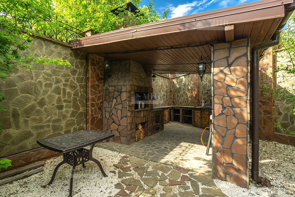 • Зона барбекю с мангалом, дровяной печью, большой столешницей для приготовления еды и раковиной.