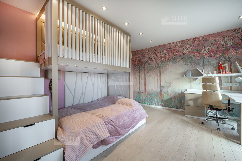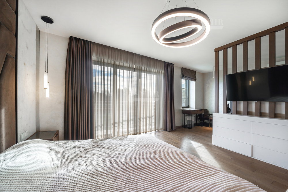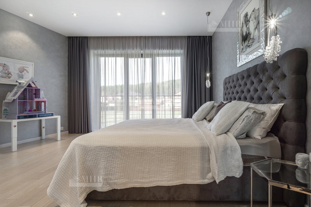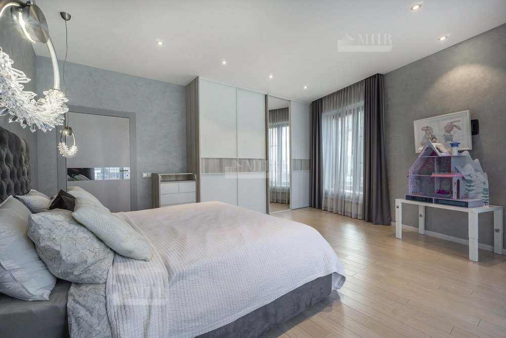 2-й этаж: детская с двухэтажной кроватью и балконом, гостевая комната с балконом, гостевая комната, санузел, мастер спальня с балконом, большим санузлом и шикарной гардеробной (над тумбами камень с подсветкой).