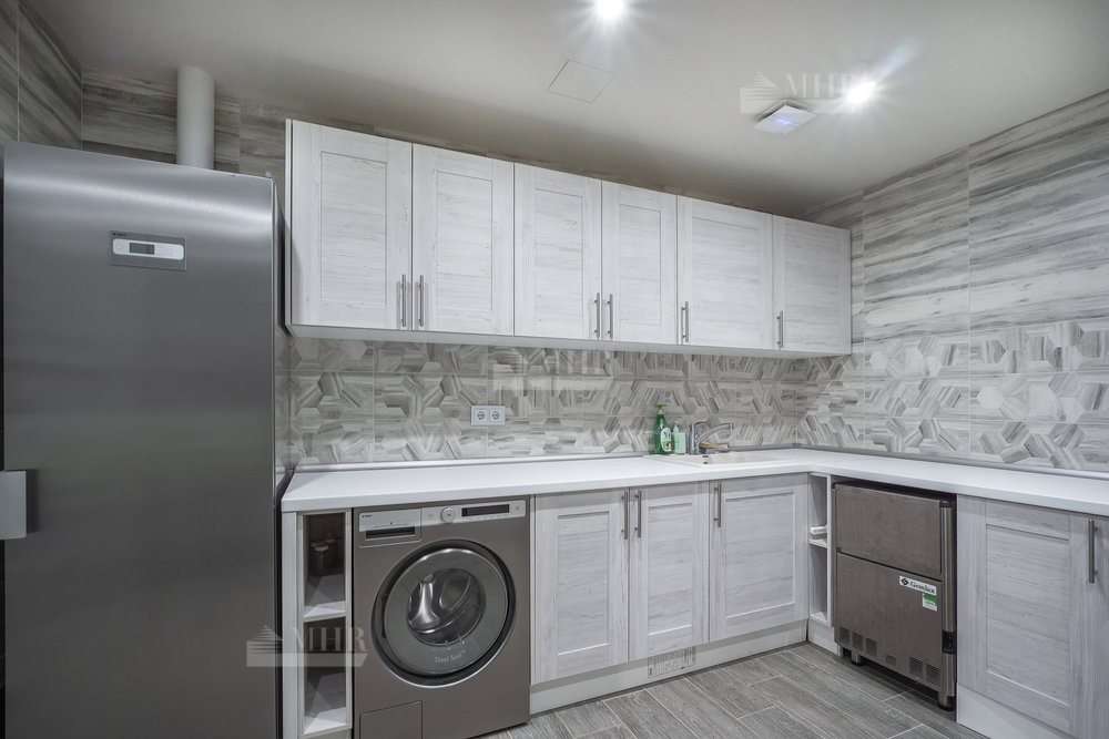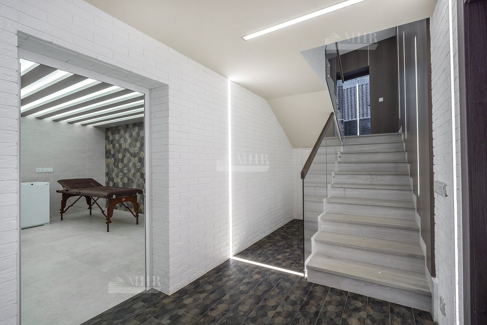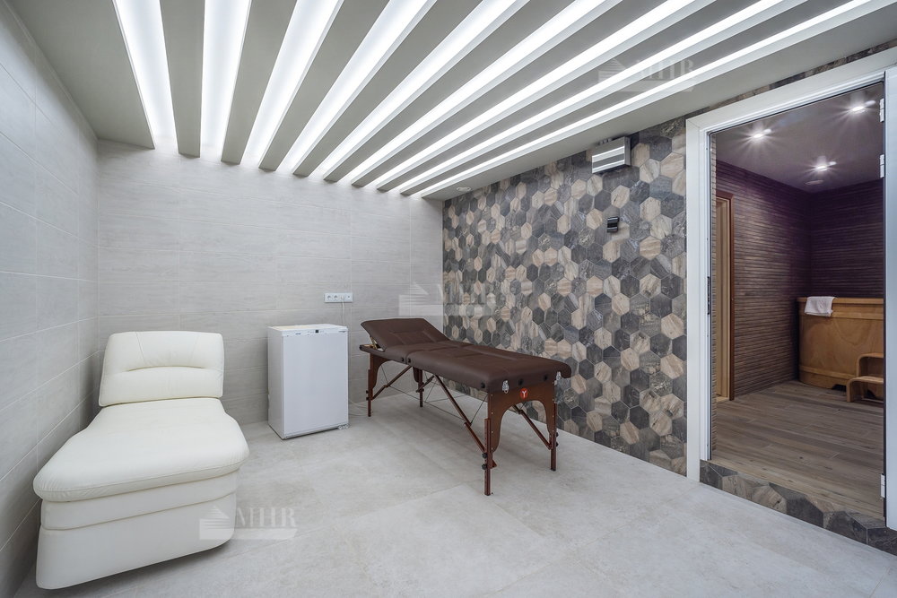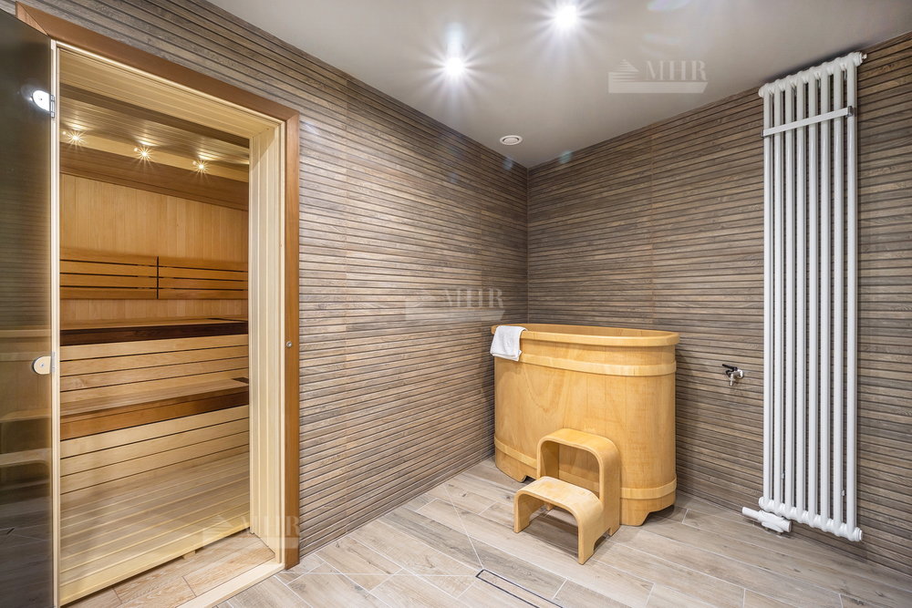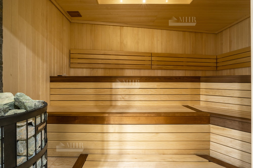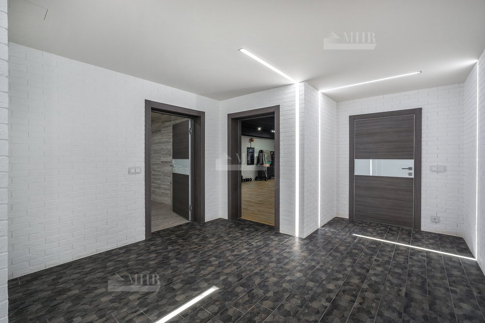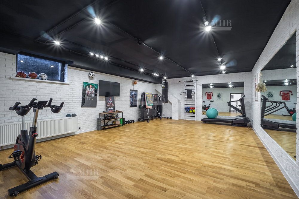Цоколь: бойлерная, техпомещение, сауна, душевая с купелью, комната отдыха, постирочная ( техника Asko), кладовая, санузел, спортивный зал с окном, зона проживания персонала с с/у и кухней( отдельный вход с улицы);