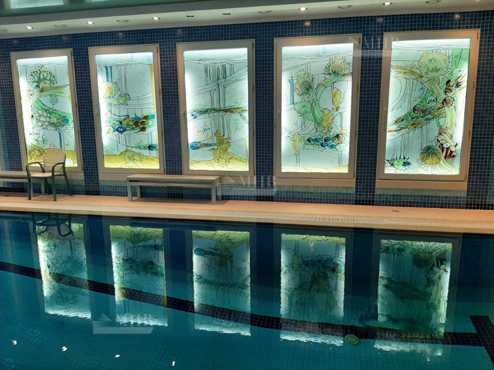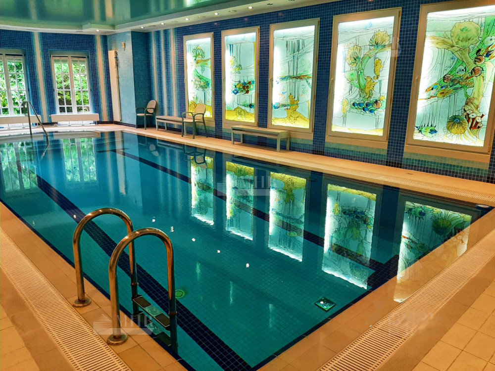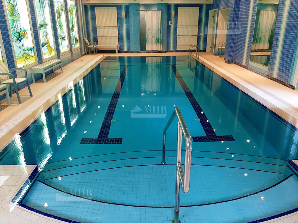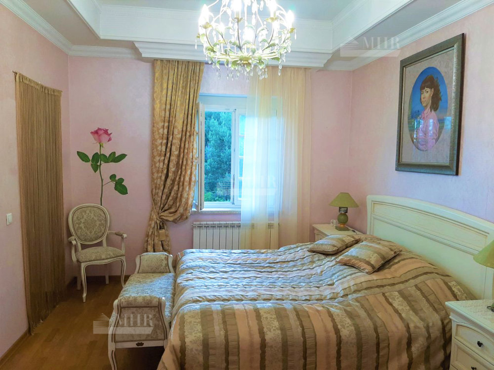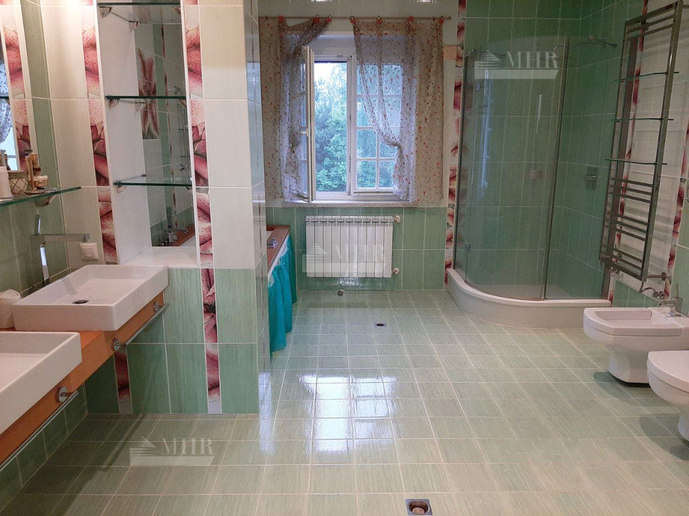 Продается добротно построенный в классическом стиле кирпичный дом площадью 580 кв.м. на участке 22 сотки. Изумительный дом с большим бассейном 85 кубометров с глубиною от 1,2 до 2 м и водным зеркалом 50 м. Бассейн с противотоком и 4 гидромассажными установками, обслуживаемый профессиональным оборудованием Ospa. Стены бассейна украшены превосходными авторскими витражами.