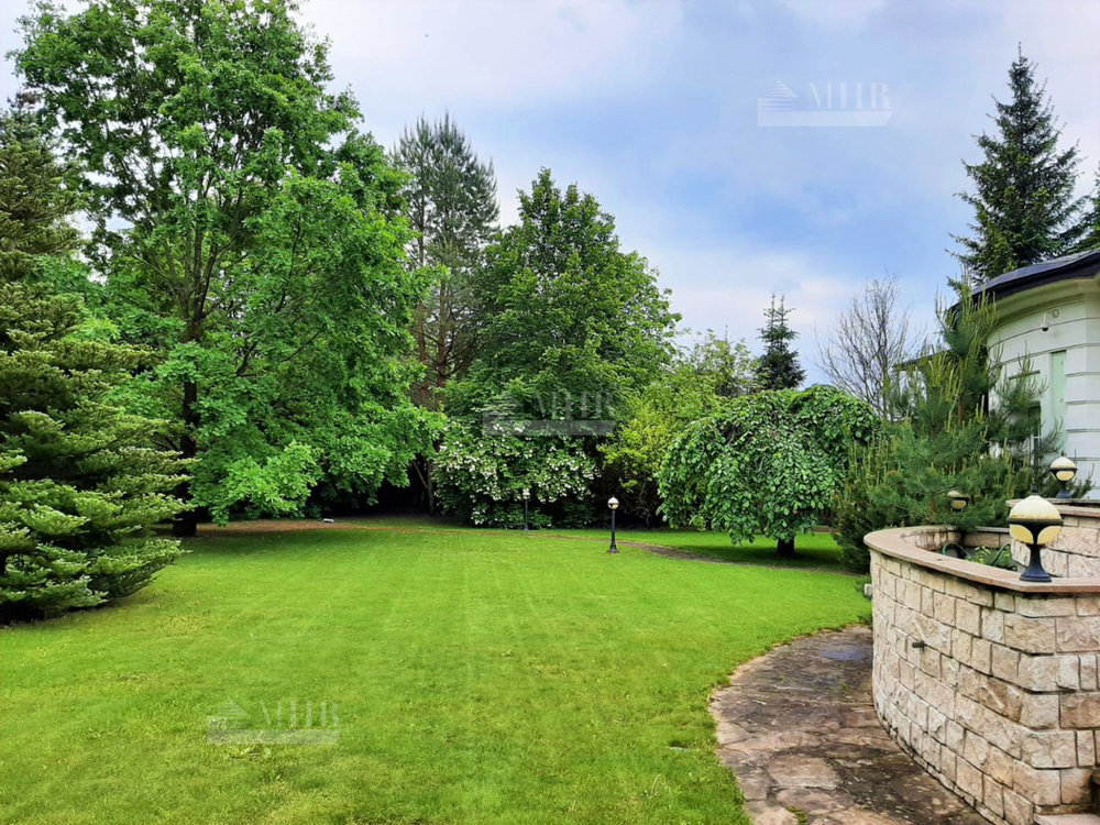 Дом отлично расположен с видом на лес. Участок ровный, правильной прямоугольной формы. На участке расположены взрослые высокие хвойные и лиственные деревья: сосны, ели, голубые ели, каштаны, березы, сирень, калина и др. (около сотни взрослых деревьев и ещё большое пространство газона в центральной части участка для любых садовых радостей, а также просторная многоуровневая каменная терраса во внутреннем дворе с выходами прямо из бассейна и из гостиной).