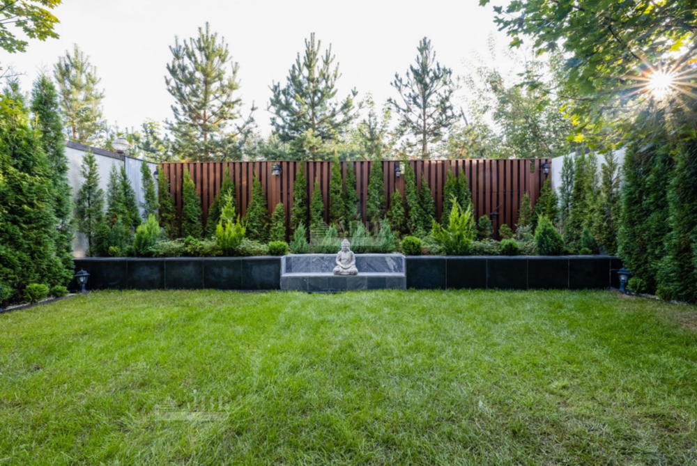 4 спальни с санузлами с возможностью увеличения еще на 2 (из игровой). Две террасы: крытая зимняя (оранжерея) и под навесом летняя. Участок оборудован под патио: гранит/мрамор/красивый ландшафт/зона отдыха/подсветка/газон
