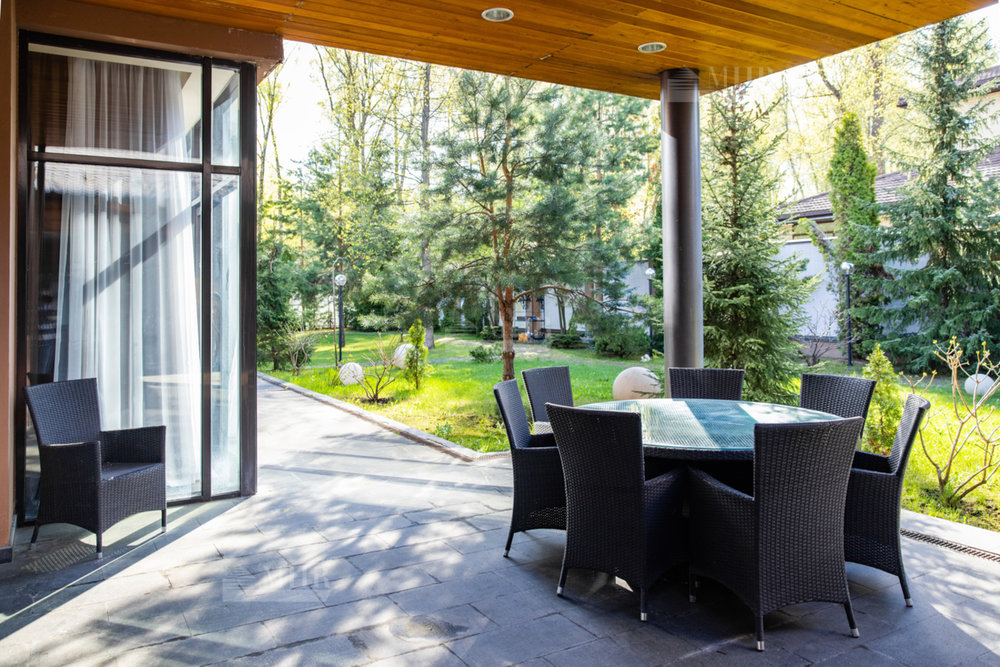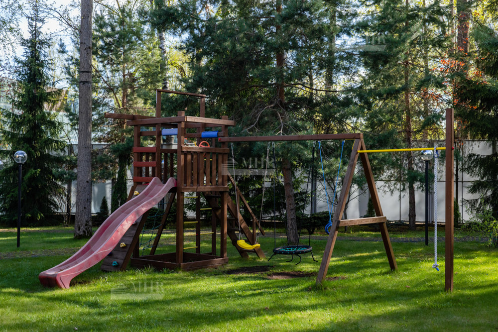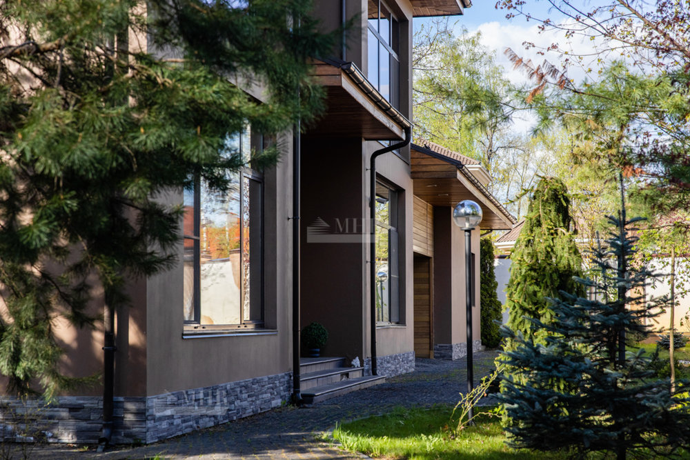 На участке выполнен ландшафтный дизайн. Рулонный газон, множество высаженных и уже взрослых деревьев согласно проекту ландшафта. Полный дренаж участка, дренаж фундамента дома и сбор ливневой воды в специальные емкости с принудительным удалением воды. Ландшафтное освещение с управлением светом из всех помещений дома. Дорожно-тропиночная сеть выполнена из гранита.
