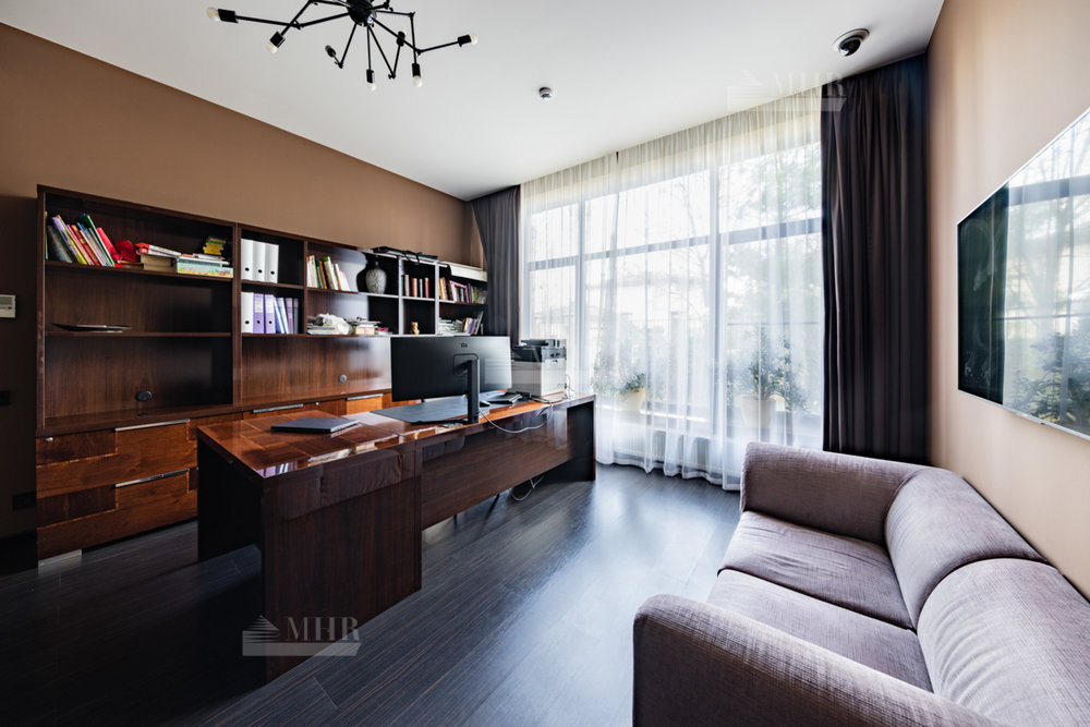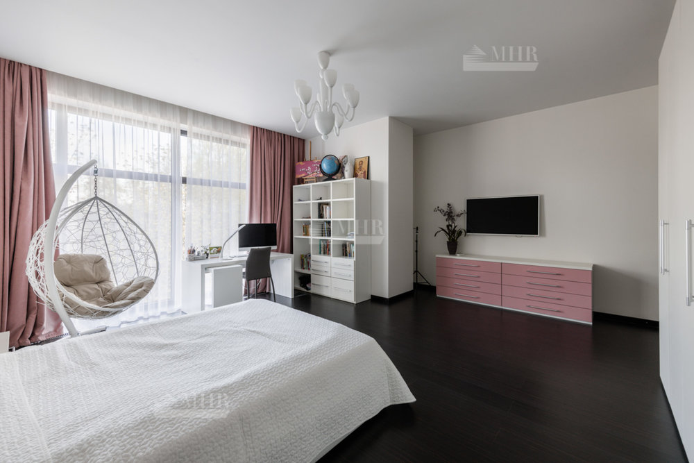 2й этаж: галерея второго света, отдельная хозяйская зона с мастер-спальней и санузлом и выходом на балкон, две детские спальни со своими сан. узлами, большая гардеробная комната.