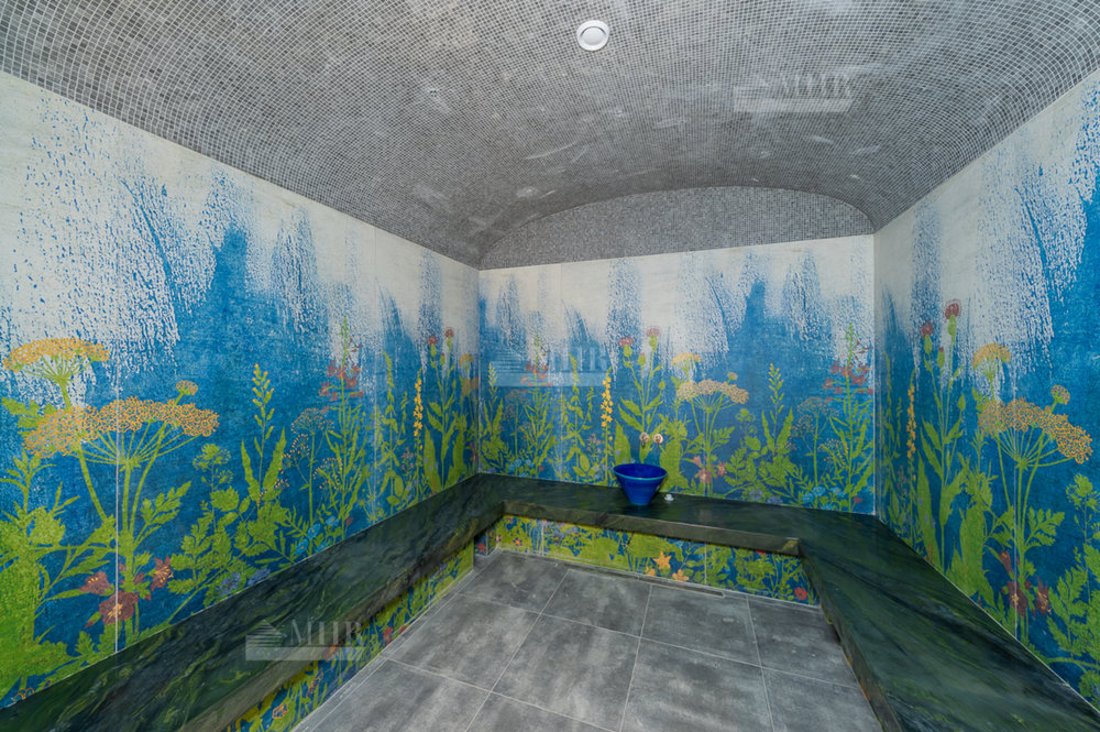 1 этаж: бассейн, гостиная, кабинет, кухня, санузел, сауна, спальня с гардеробной - 2шт., столовая, тренажерный зал, хамам;