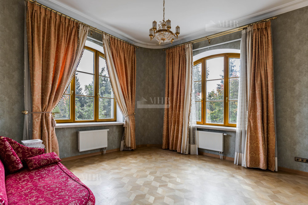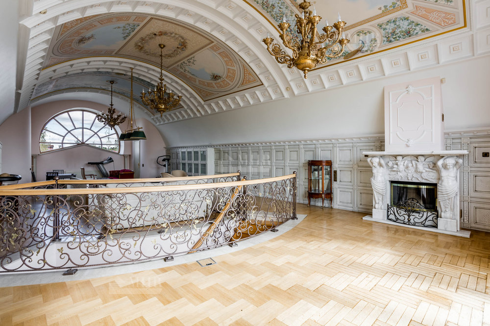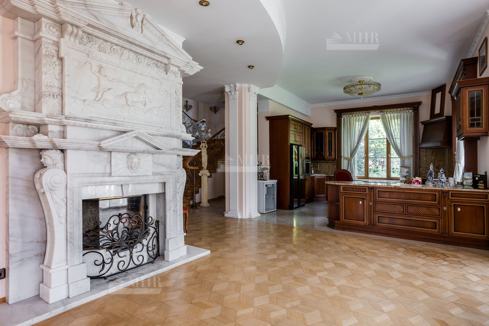 (В гостиной установлен мраморный дровяной камин)