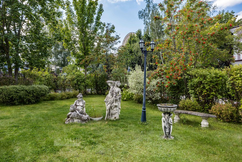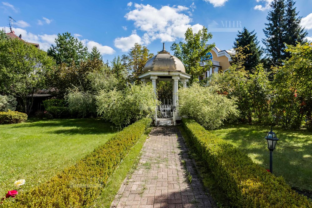 На участке выполнен ландшафтный дизайн, барбекю, растут деревья и кустарники. Участок огорожен по периметру.