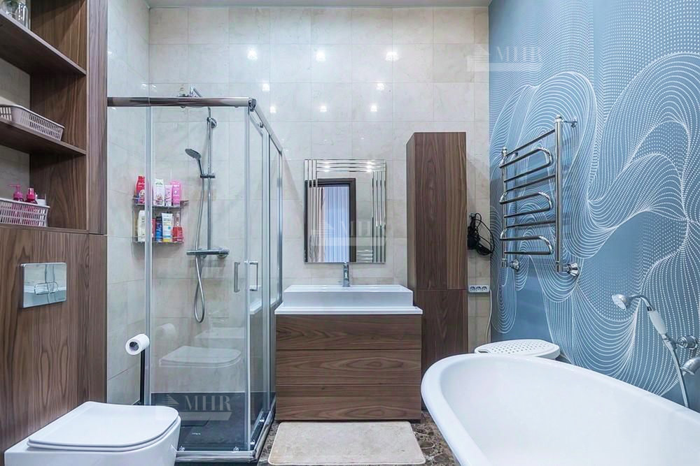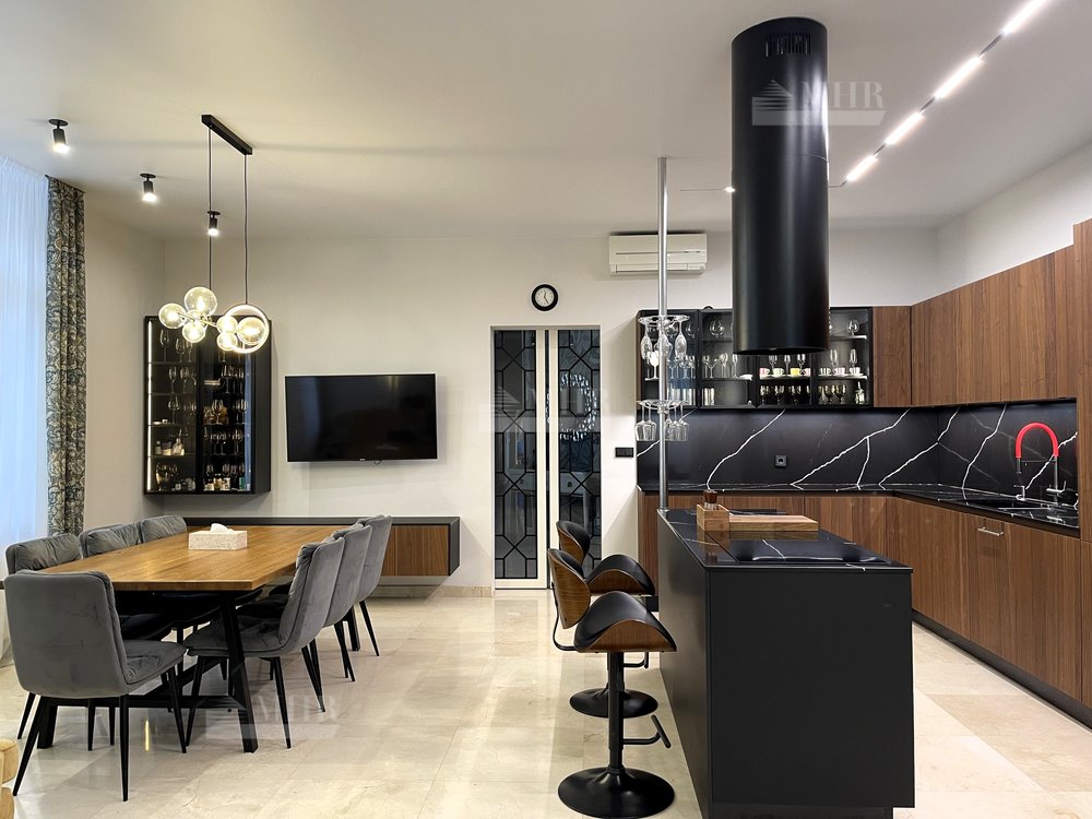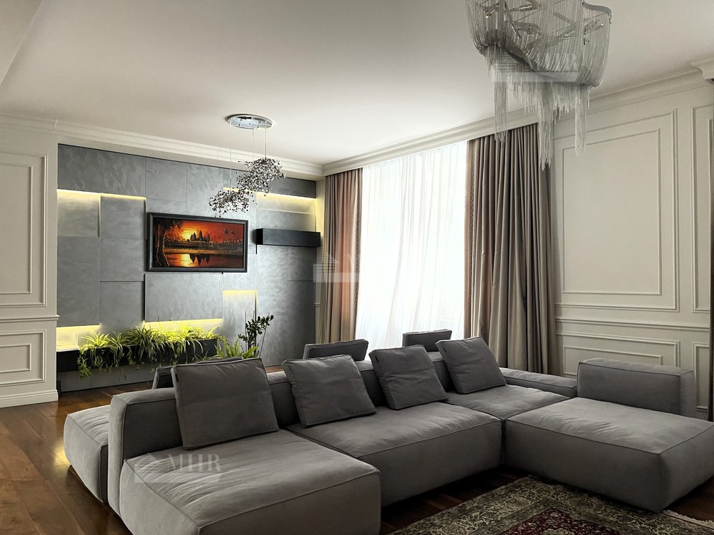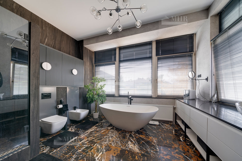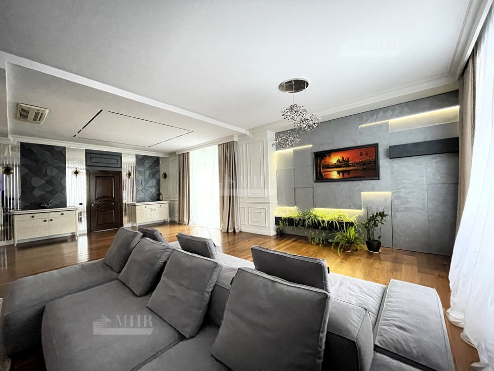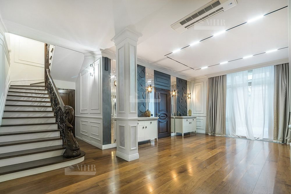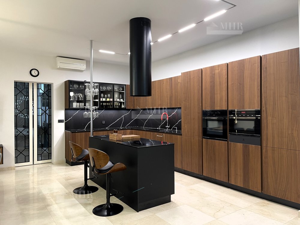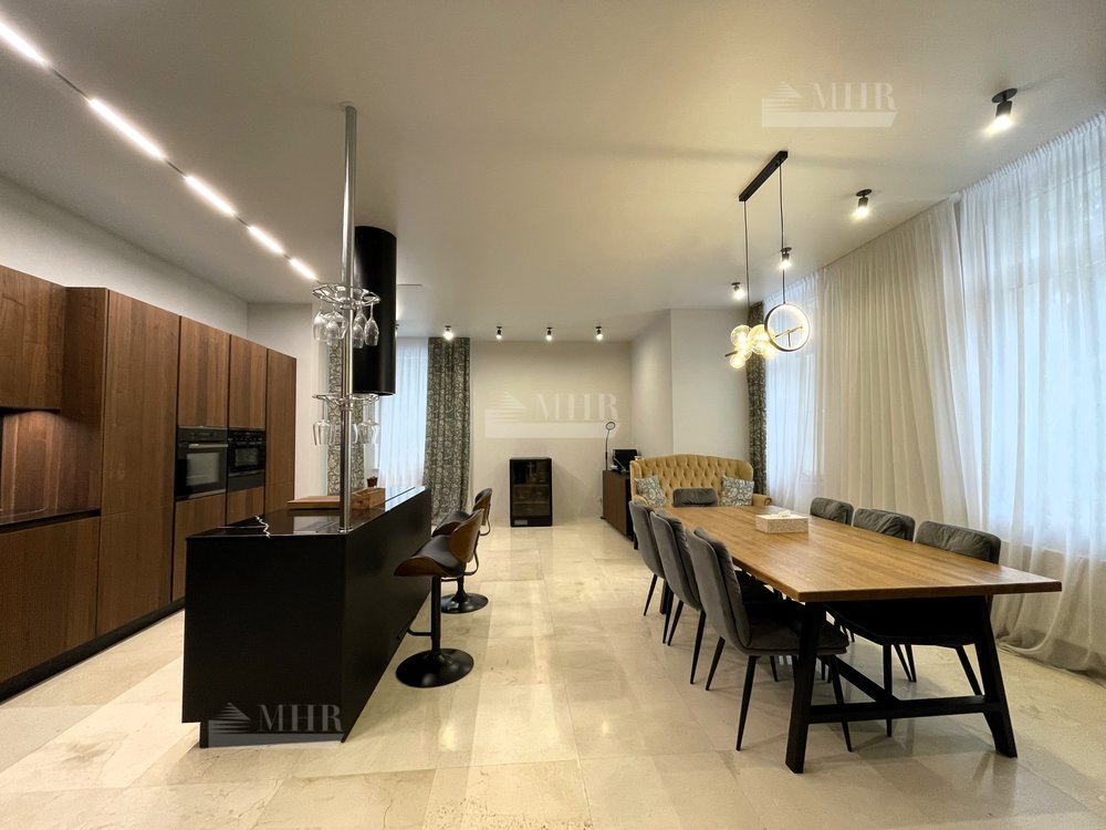 Отделка выполнена в современном стиле из премиальных материалов. Эксклюзивная мебель подобрана на заказ. Кухня и гардеробные Bordignon Camillo (Италия), встроенная техника Kuppersbusch (Германия).