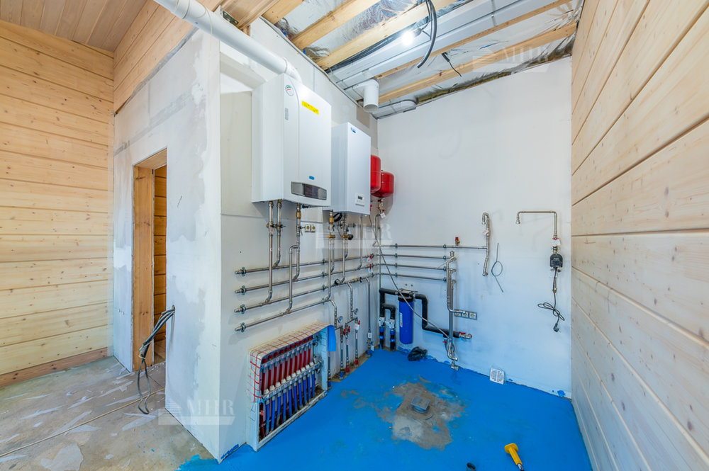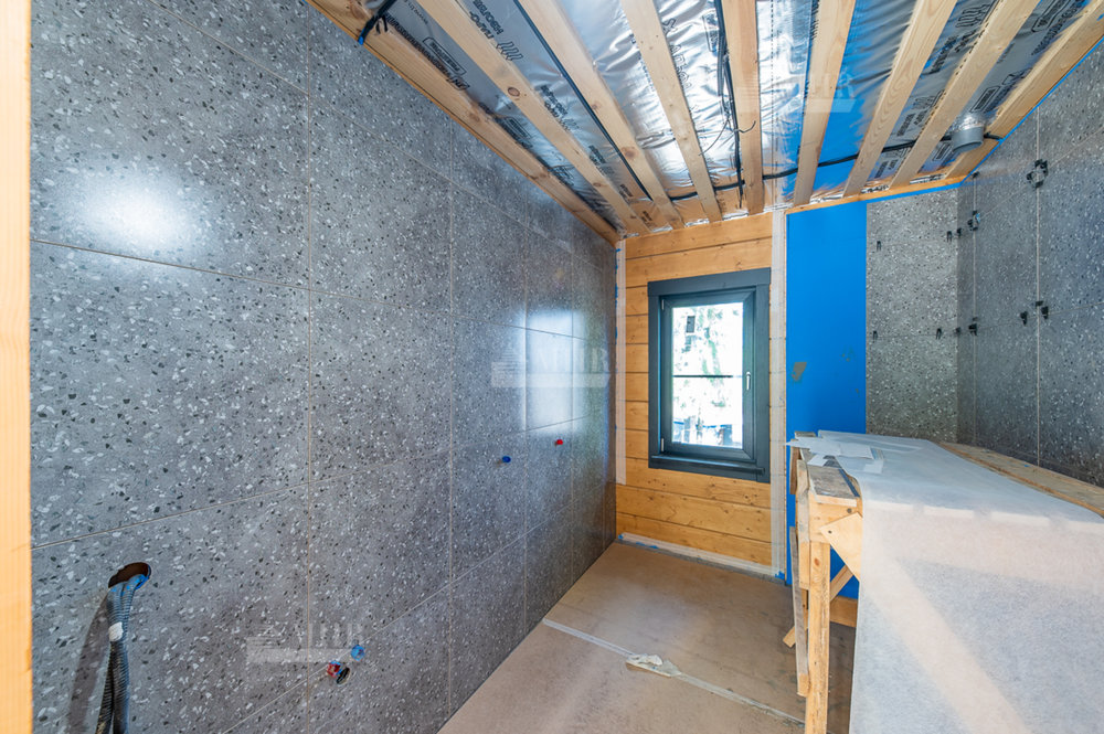 По всей площади дома проложен теплый пол, сделана стяжка.