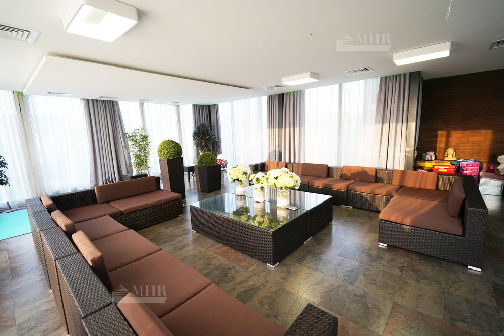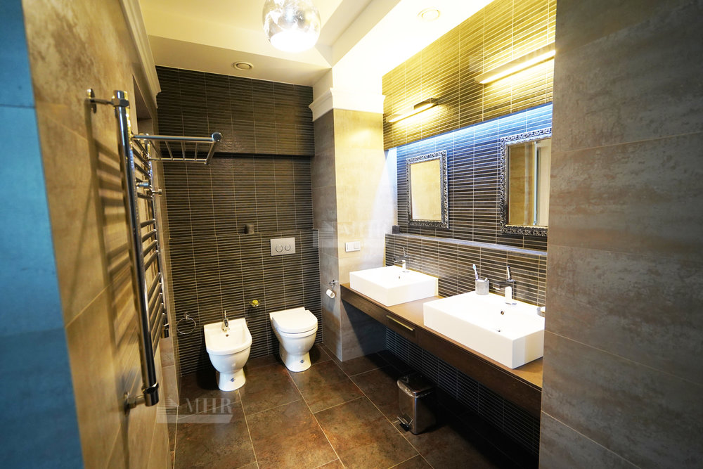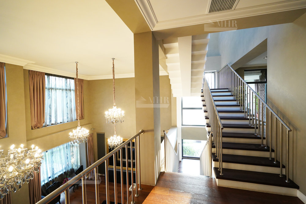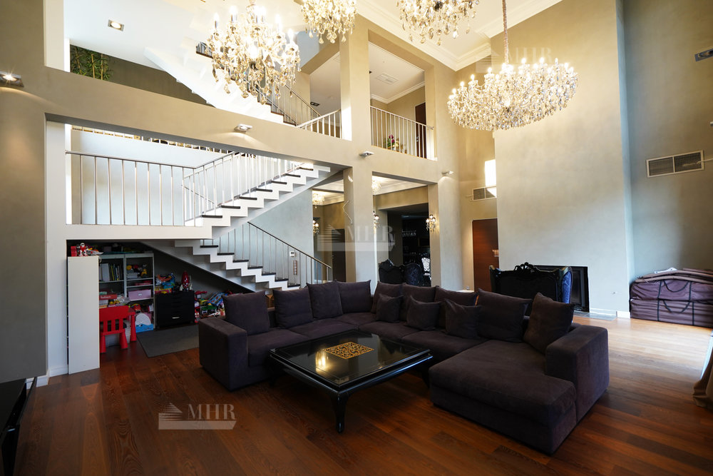 1 этаж: гостиная со вторым светом, кухня-столовая, кабинет, гостевой с/у, комната для персонала с с/у, постирочная, гараж на 2 машины.
