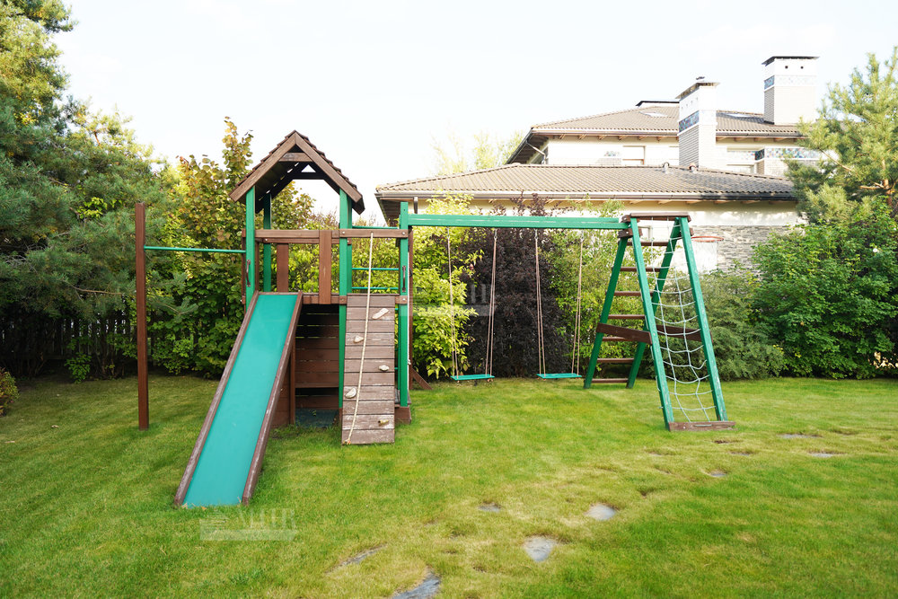 Дом расположен на уникальном участке, на берегу небольшой речки Синичка. Участок лесной, многоуровневый, с ландшафтным дизайном, летней кухней, террасой для загара и пространством для вертолетной площадки.