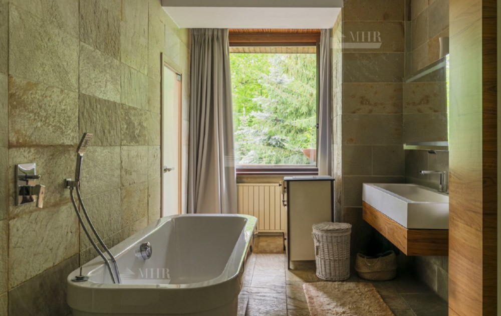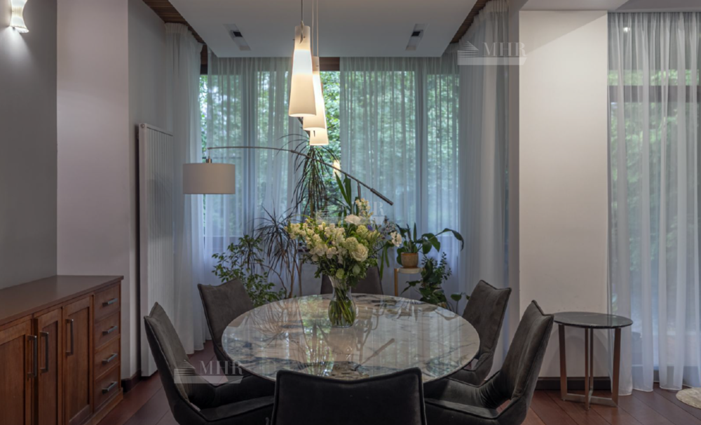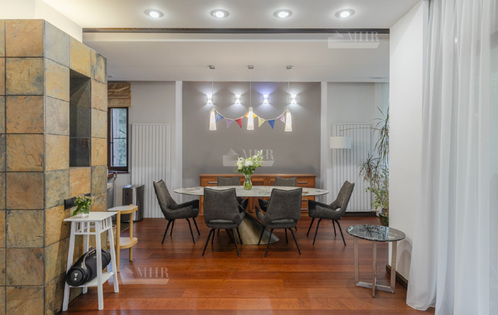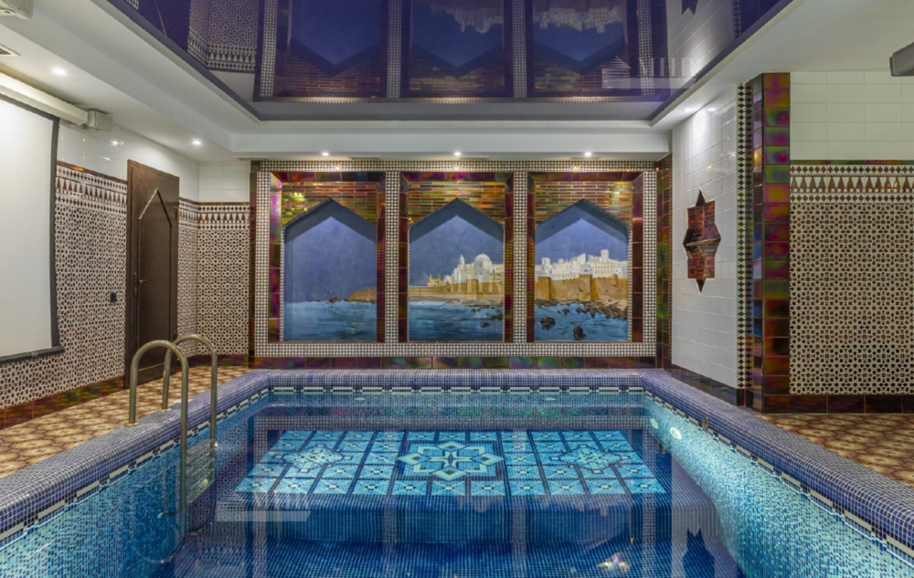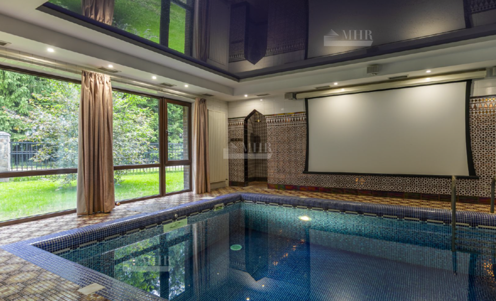 1-й этаж: тамбур, 2 гардеробные, холл, с/у, гостиная, кухня-столовая с выходом на веранду, кабинет, комната свободного назначения с выходом на веранду, блок СПА: холл, бассейн, душевая, хаммам, котельная;
