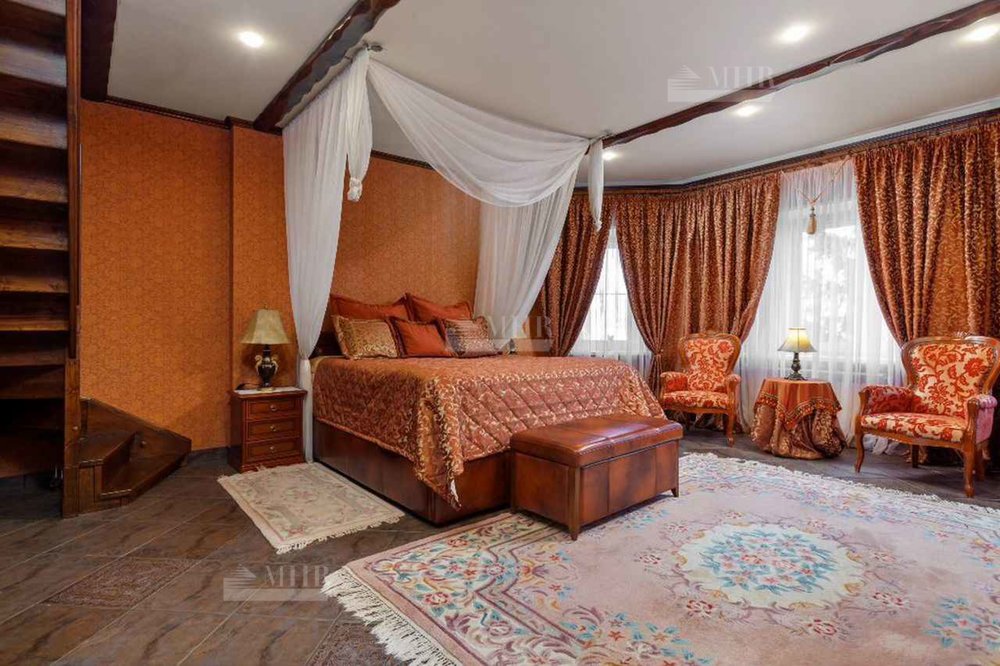 2 этаж - библиотечный холл с зоной отдыха, малая гостиная со вторым светом и камином, хозяйская спальня с мансардной комнатой в эркере и своей ванной комнатой с джакузи, душевой кабиной с парогенератором, биде, и гардеробной комнатой с системой хранения, детская спальня, кабинет/спальня со своим санузлом с окном, душевой и угловой ванной.