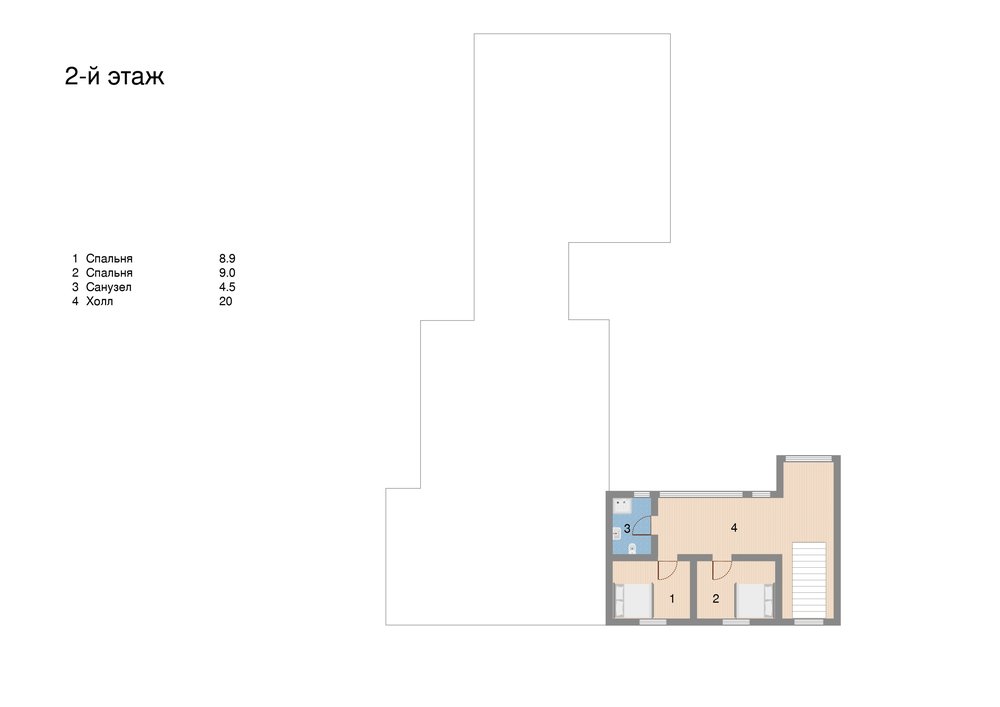 2-й этаж: холл, 2 спальни, с/у.