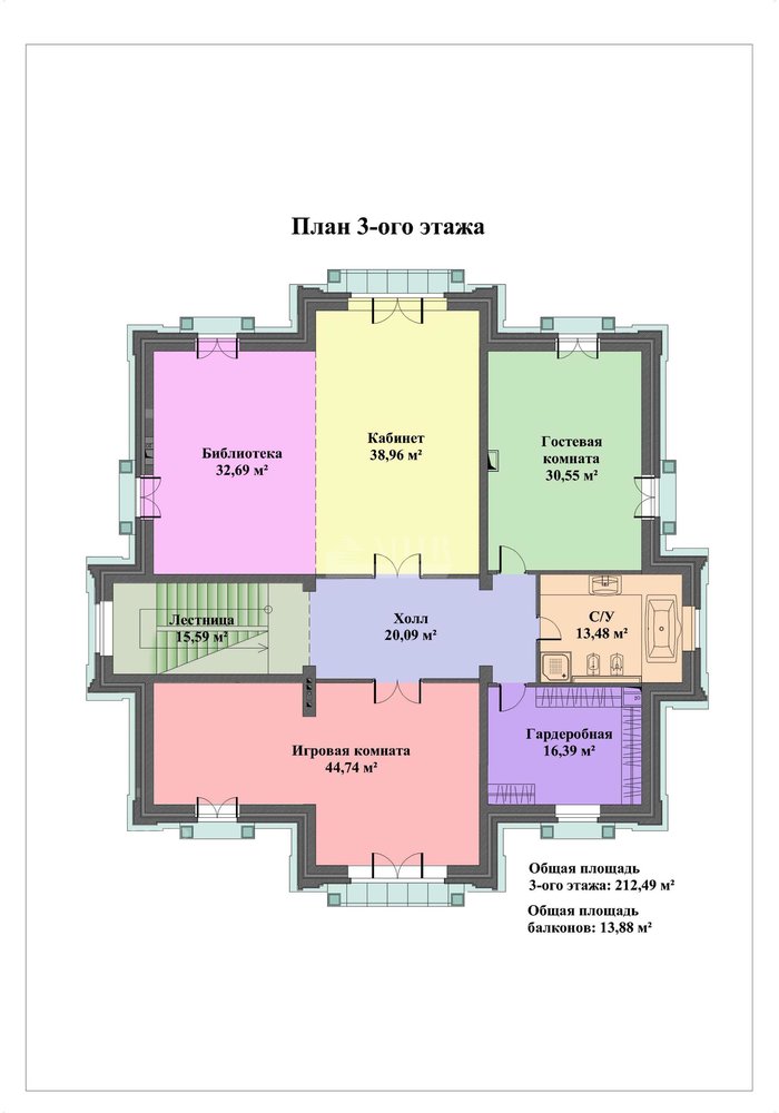 Мансарда: холл, пять комнат свободного назначения, с/у.