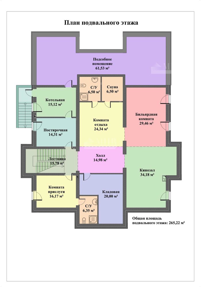 Цоколь: котельная, два с/у, холл, восемь комнат свободного назначения.