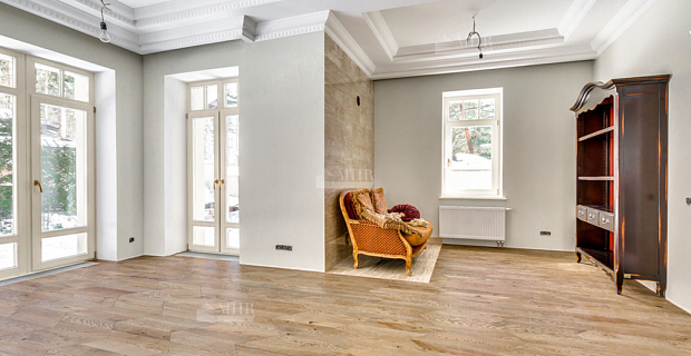 На лесном участке 30 соток с выходом к реке продается дом по индивидуальному проекту архитектурного бюро ” Гинзбург Архитектс” в классическом стиле площадью 900м2 под чистовую отделку. Ландшафтный дизайн участка разработан студией Натальи Богомоловой.