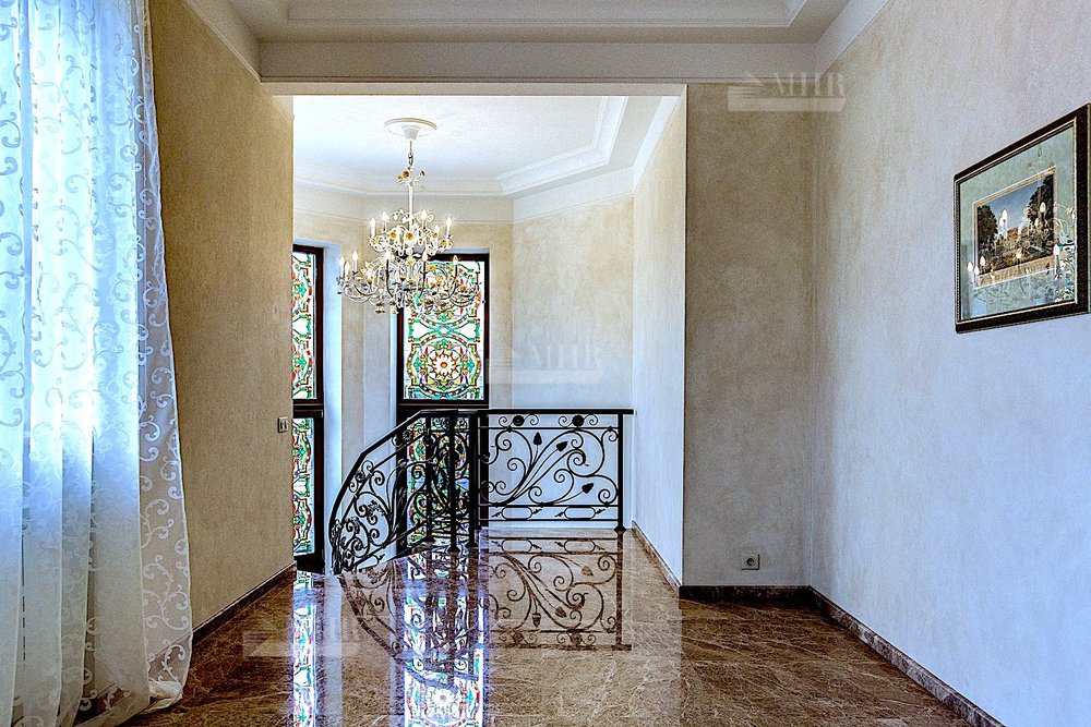 2 этаж: Три спальни, три гардеробных, три ванные комнаты, холл, библиотека.