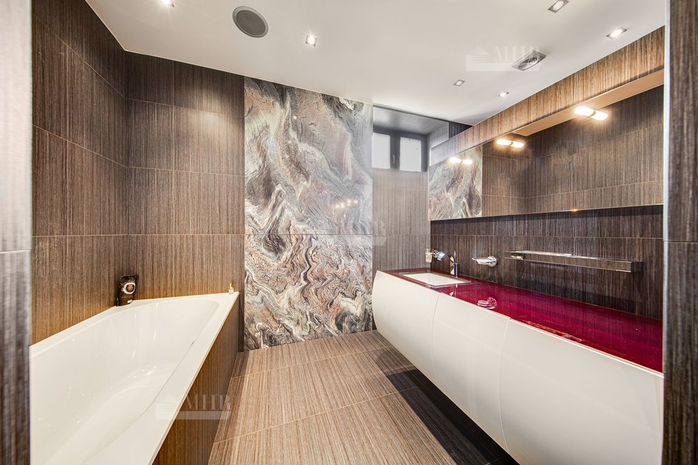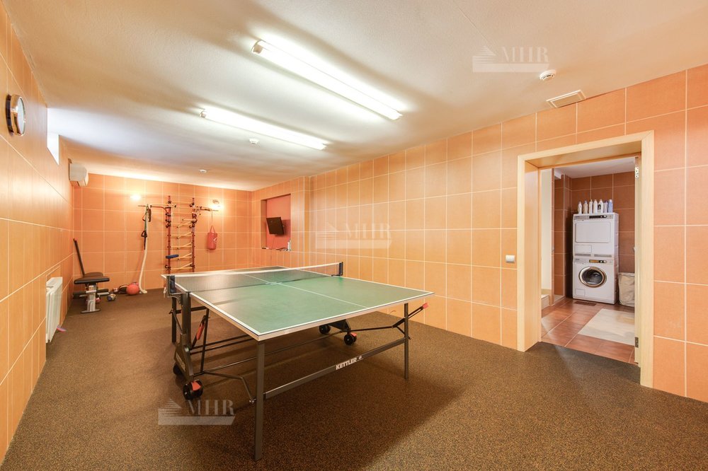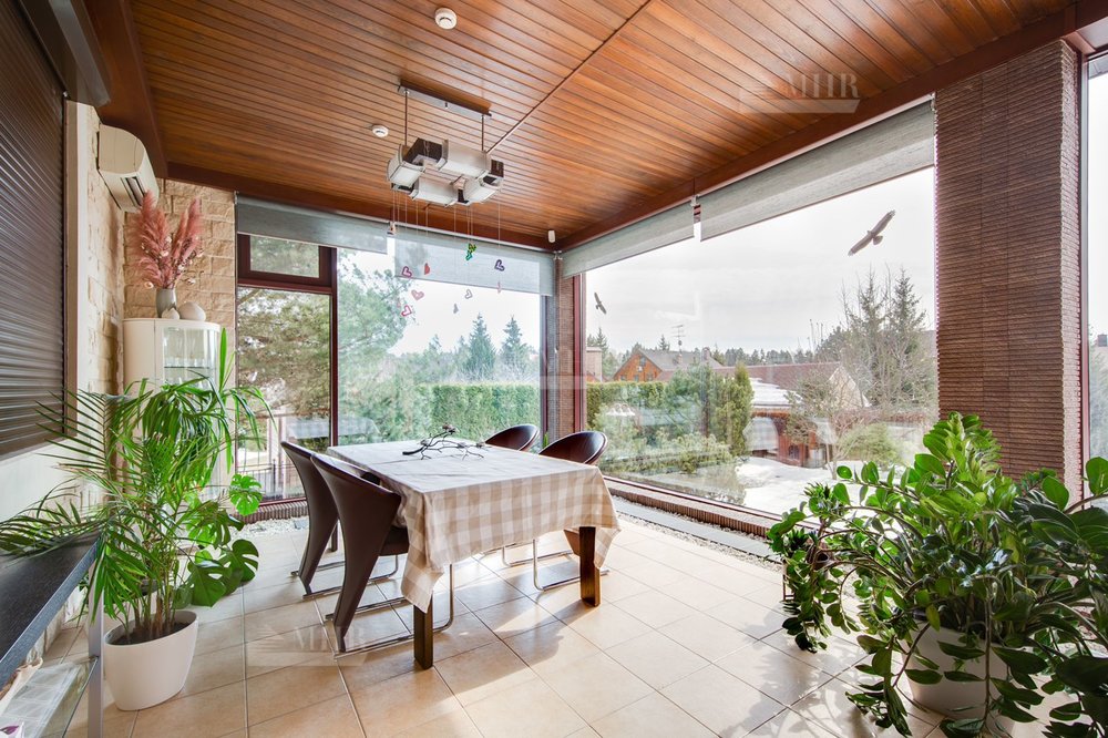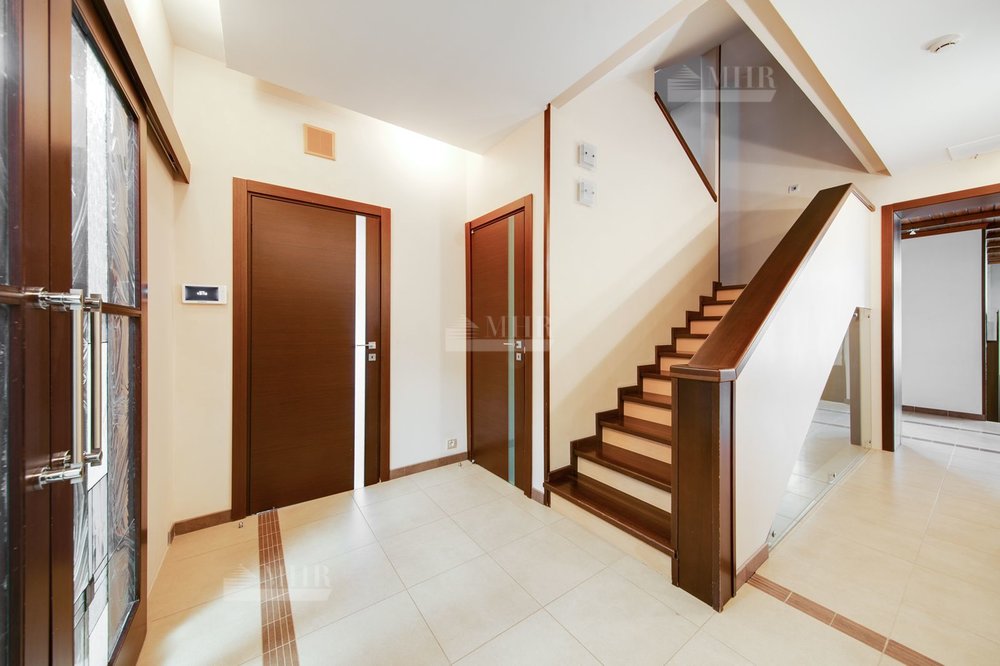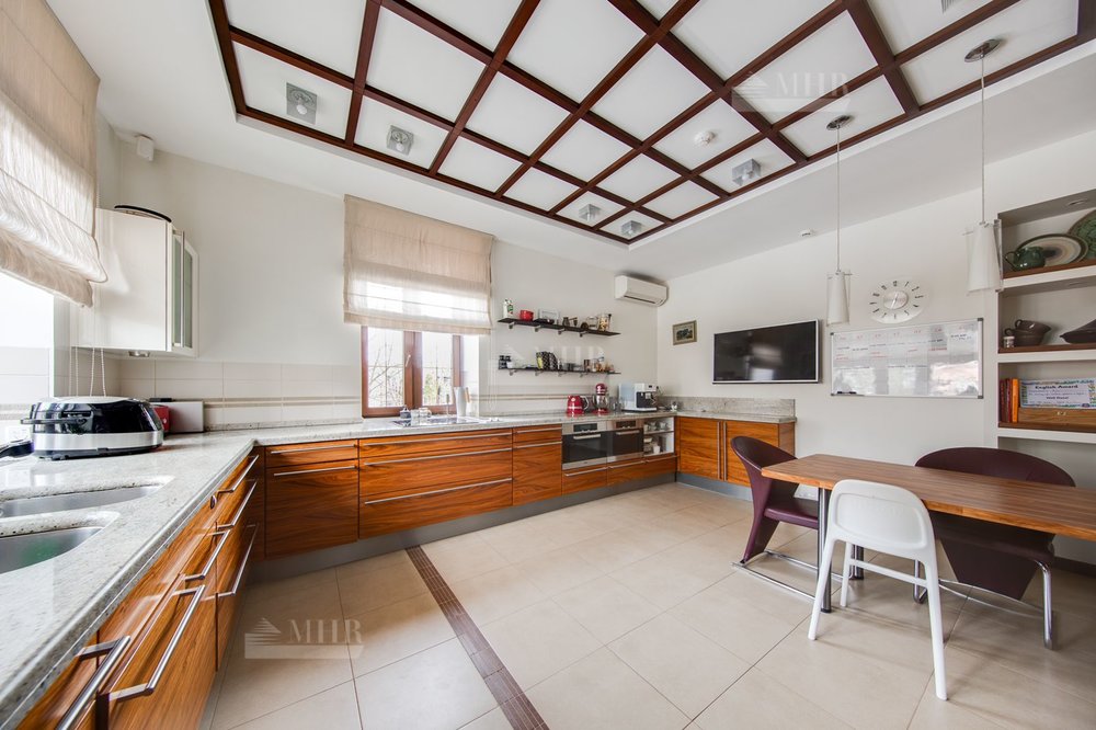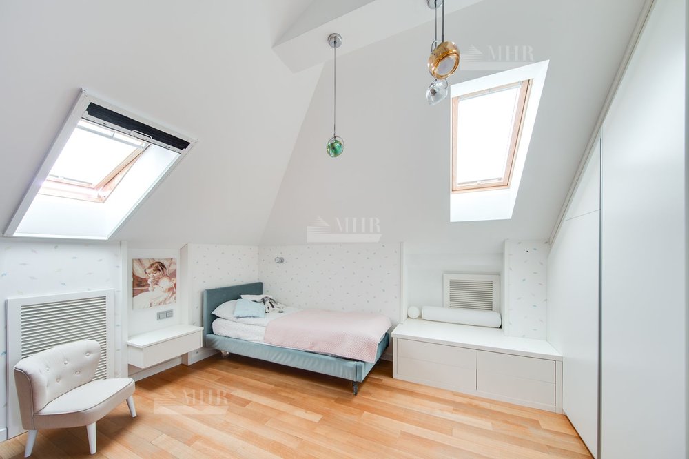 престижном коттеджном поселке Новорижский. На первом этаже спланирована светлая гостиная с камином, кухня-столовая с панорамными окнами и видом в сад, гостевая спальня, зимний сад, бильярдная комната, гардеробная, гостевой туалет и холл. На втором этаже расположена мастер-спальня с ванной комнатой и гардеробной, две детские спальни с ванной комнатой, кабинет. В мансарде есть игровая зона, детская спальня со своей ванной комнатой. На цокольном этаже находится тренажерный зал, постирочная и хозяйственная комната. В доме установлена промышленная система увлажнения Manitoba, 3-х