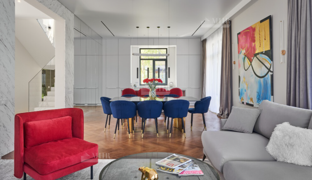 2-й этаж: мастер-спальня с с/у и гардеробной, 2 спальни, с/у, кабинет, гардеробная.