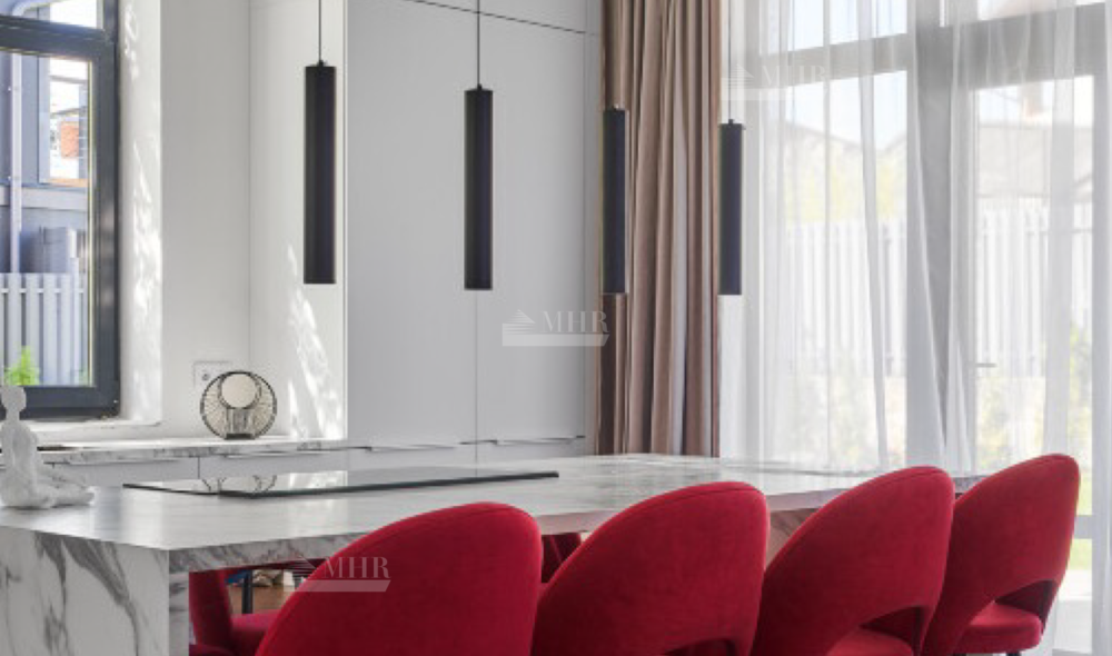 Большие панорамные окна обеспечивают естественное освещение на протяжении всего дня, создавая атмосферу тепла и уюта даже в пасмурную погоду. Этот дом идеально подойдёт для тех, кто ищет современный и функциональный вариант загородного жилья с комфортной близостью к столице и развитой инфраструктурой.