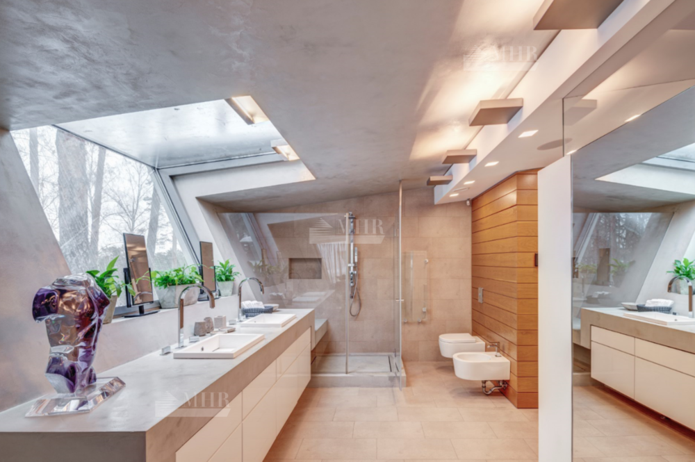 ДОМ СПРОЕКТИРОВАН С УЧЕТОМ МЕСТНОГО РЕЛЬЕФА И ОТКРЫВАЕТ ЛУЧШИЕ ВИДЫ НА ПАРК. В ДОМЕ: 8 СПАЛЕН, 2 ГОСТИНЫЕ, 10 ВАННЫХ КОМНАТ, РАБОЧАЯ КОМНАТА, ГАРДЕРОБНЫЕ КОМНАТЫ, ТЕРРАСЫ С КАМИНАМИ, ЖИЛЫЕ ПОМЕЩЕНИЯ ДЛЯ ПЕРСОНАЛА, ГАРАЖ.