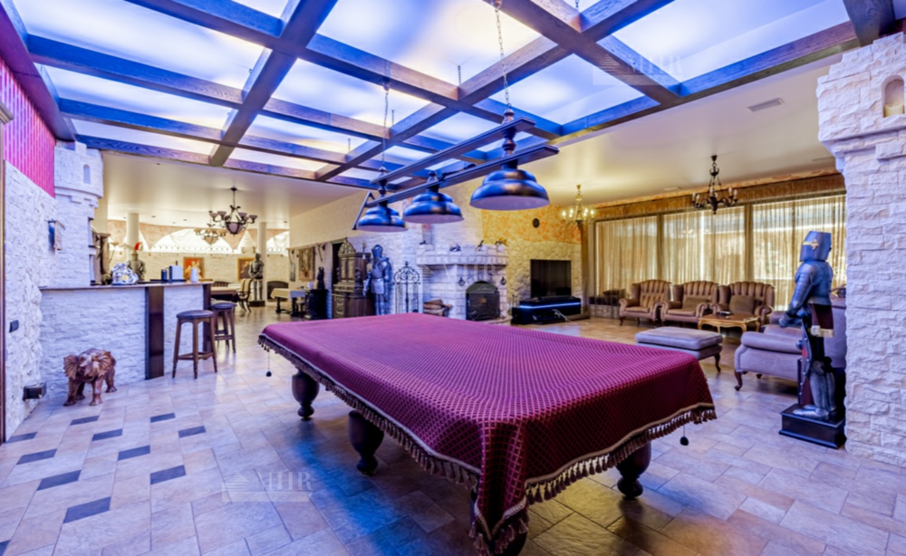 Цоколь: СПА-зона с большим бассейном, джакузи, сауной, хамам, душевой и с/у, бильярдная с баром и зоной отдыха, винный погреб, черновая кухня, массажный кабинет, тех. помещения.