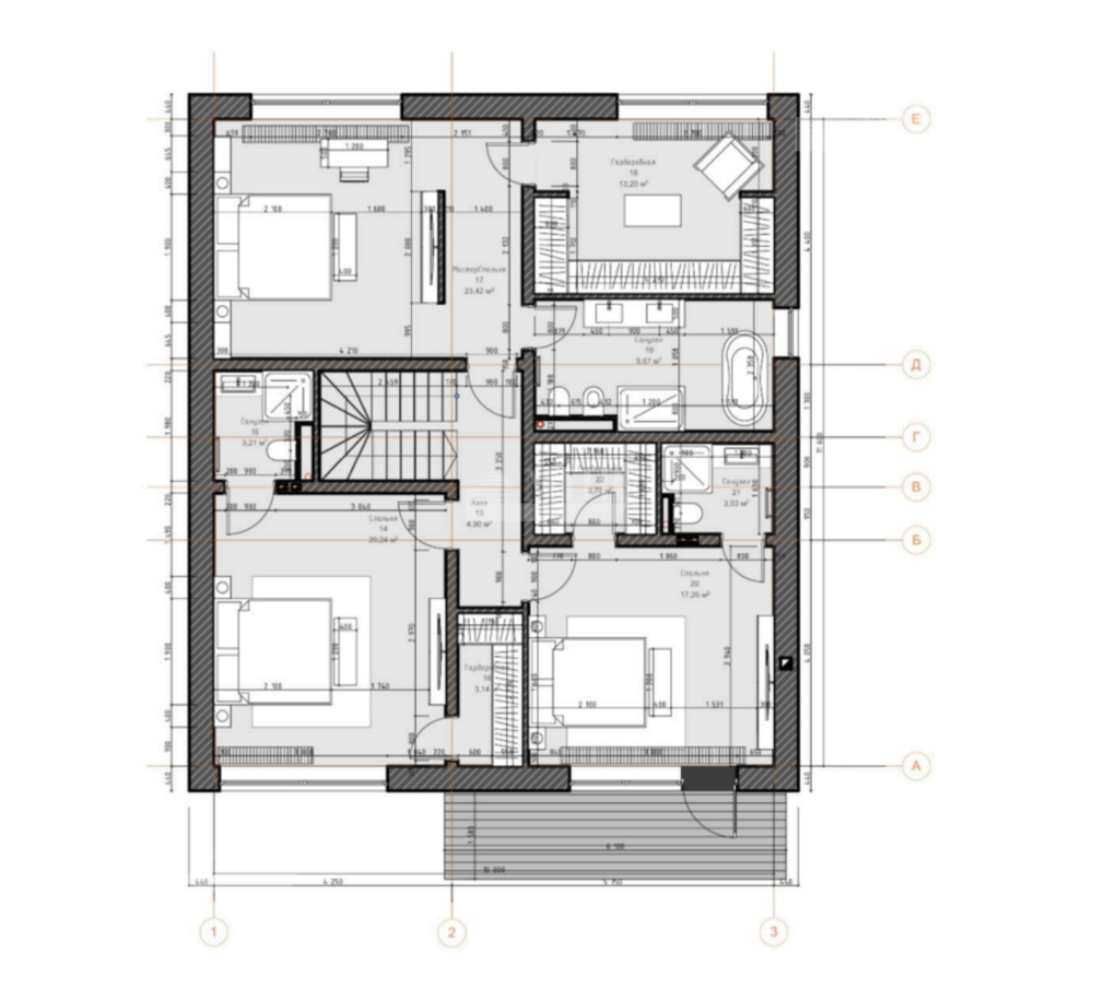 2й этаж: мастер-спальня с большой гардеробной и ванной комнатой, две детские спальни со своими с/у и гардеробными, в одной из комнат есть балкон.