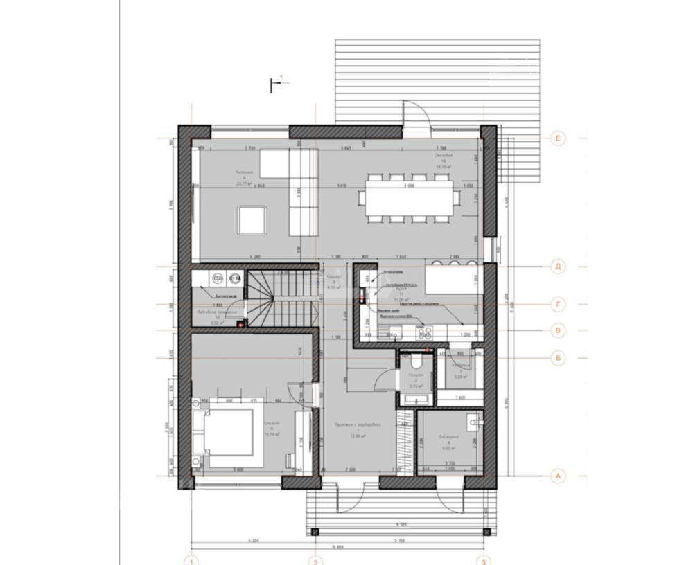 1й этаж: прихожая, гостевая спальня со своим с/у, постирочная, кухня с кладовой, гостиная, столовая с выходом на террасу, газовая котельная с отдельным входом;