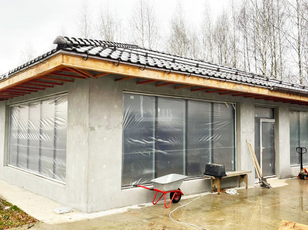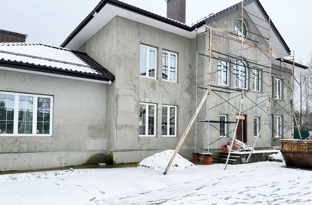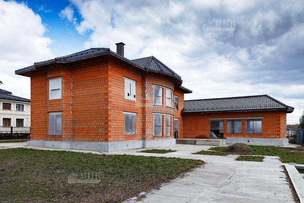 Дом под отделку в классическом стиле. Расположен в приватной части поселка. В доме установлены окна, на участке возведена беседка.