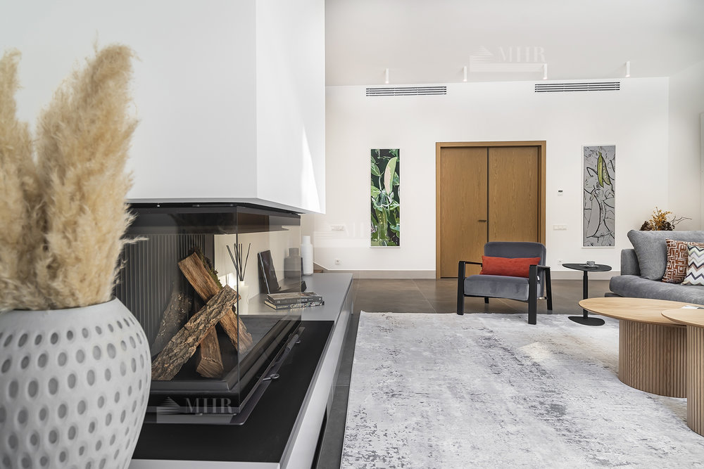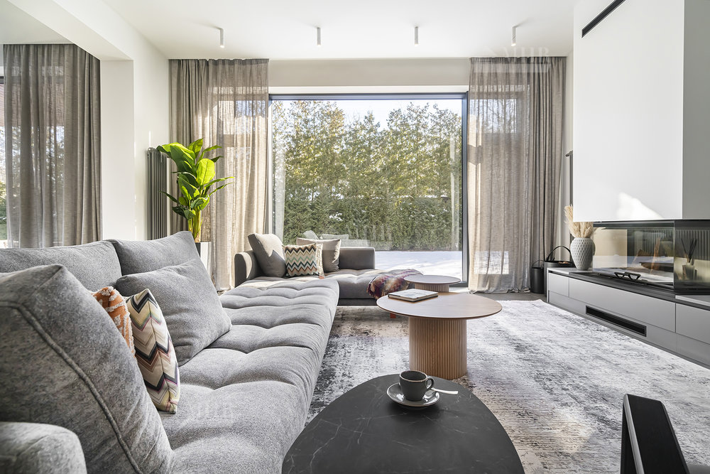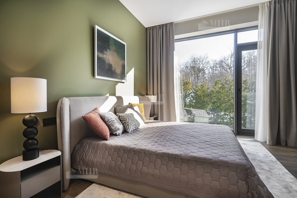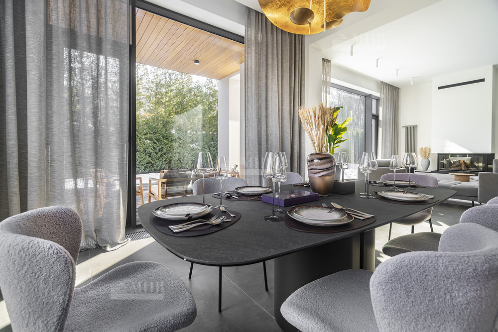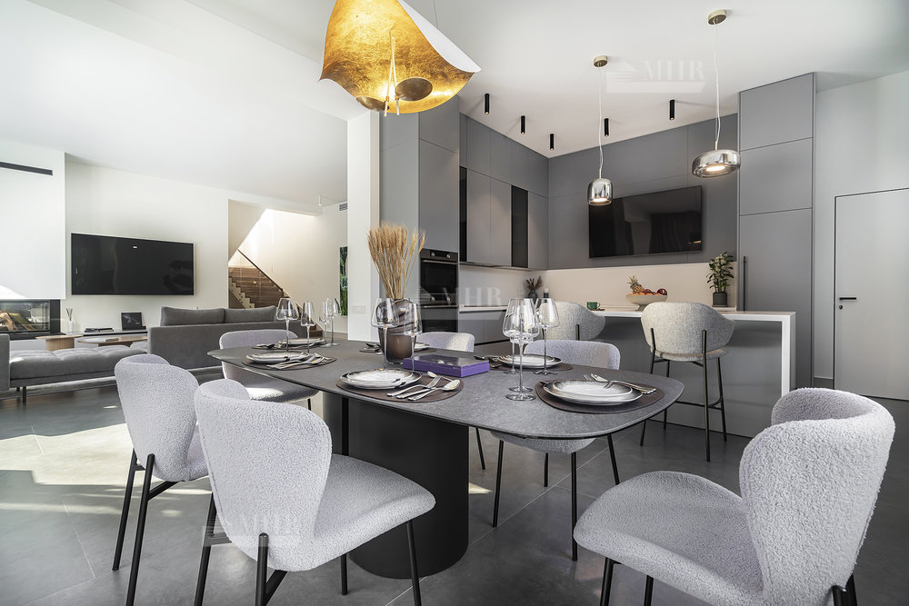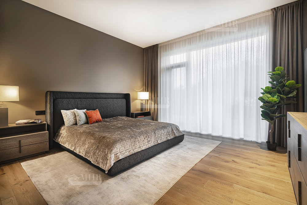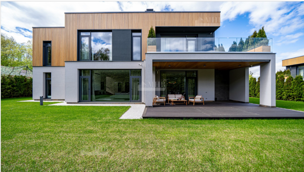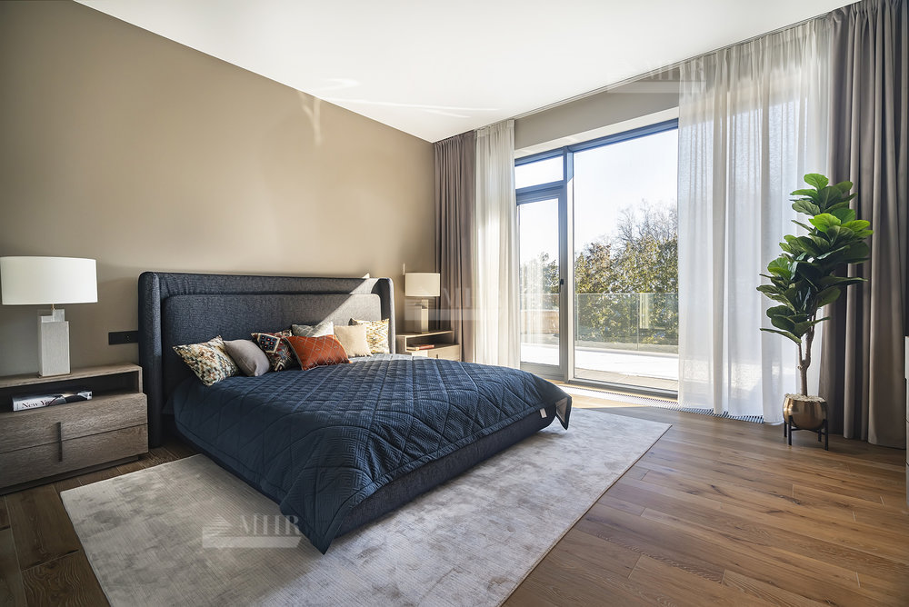 Панорамное остекление с просторной террасой. В доме установлена система приточной вентиляции, канальное кондиционирование и видеонаблюдение.
