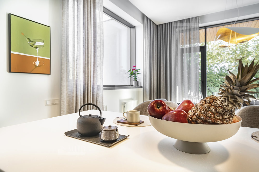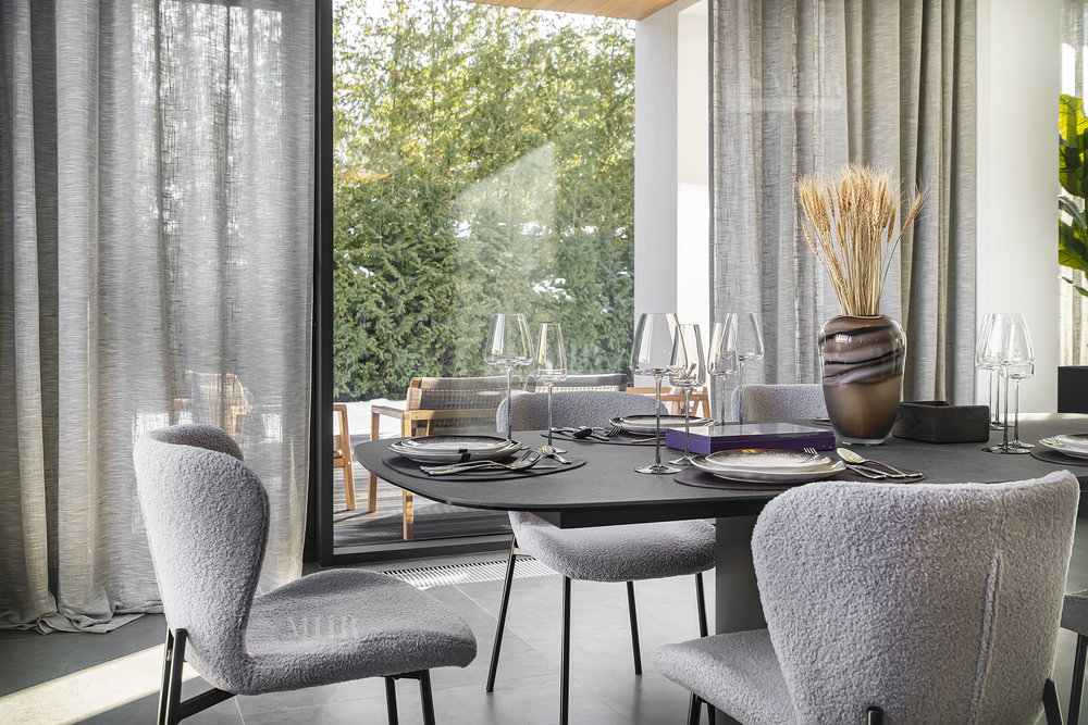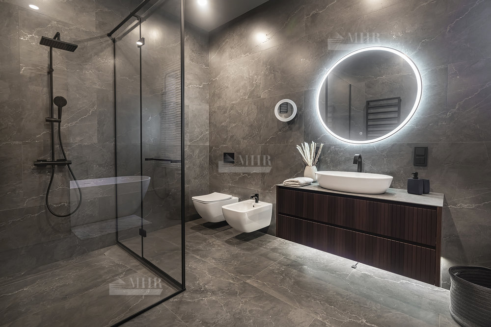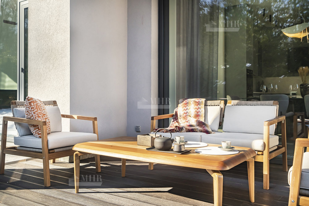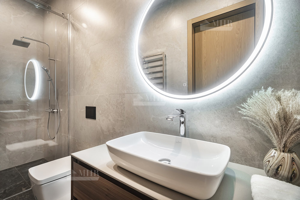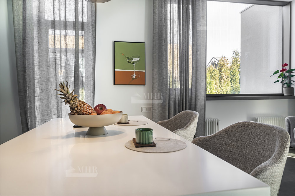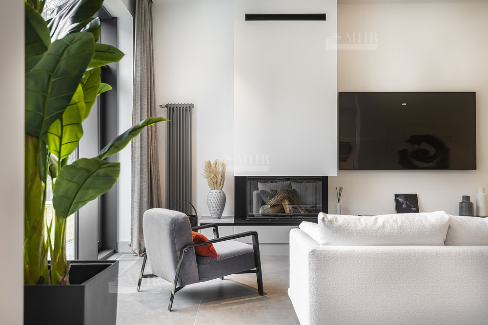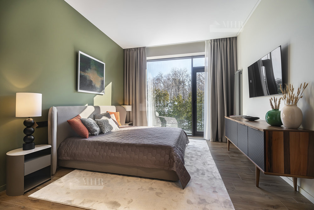 Панорамное остекление с просторной террасой. В доме установлена система приточной вентиляции, канальное кондиционирование и видеонаблюдение.