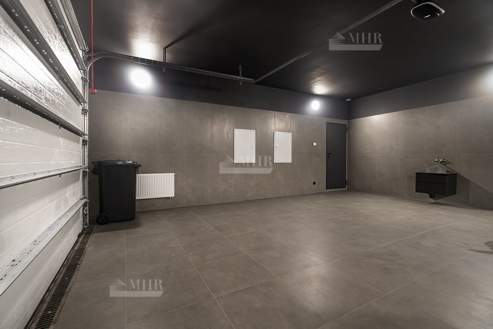 1-й этаж: холл, гардеробная, гостевой с/у, просторная гостиная с камином, телевизионной зоной и выходом на террасу, кухня-столовая с большой террасой, блок персонала с с/у и отдельным входом, постирочная, котельная, гараж;