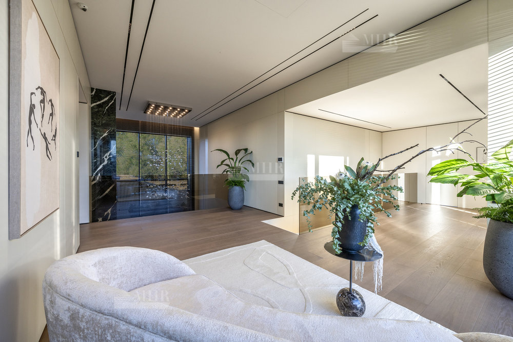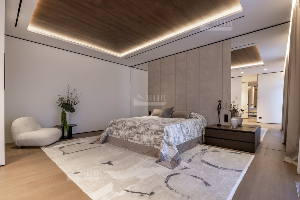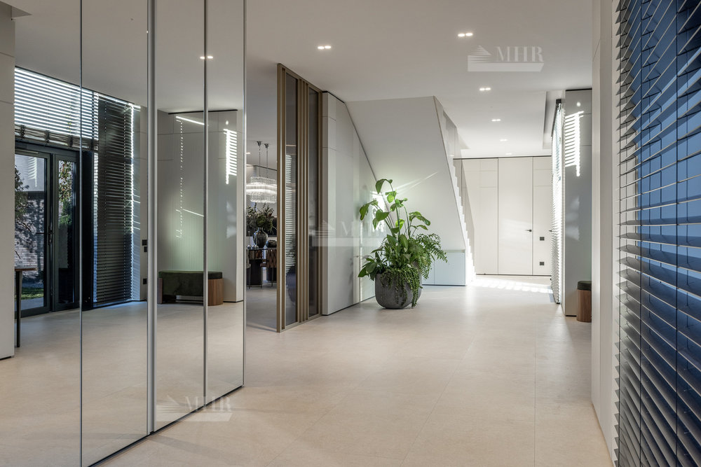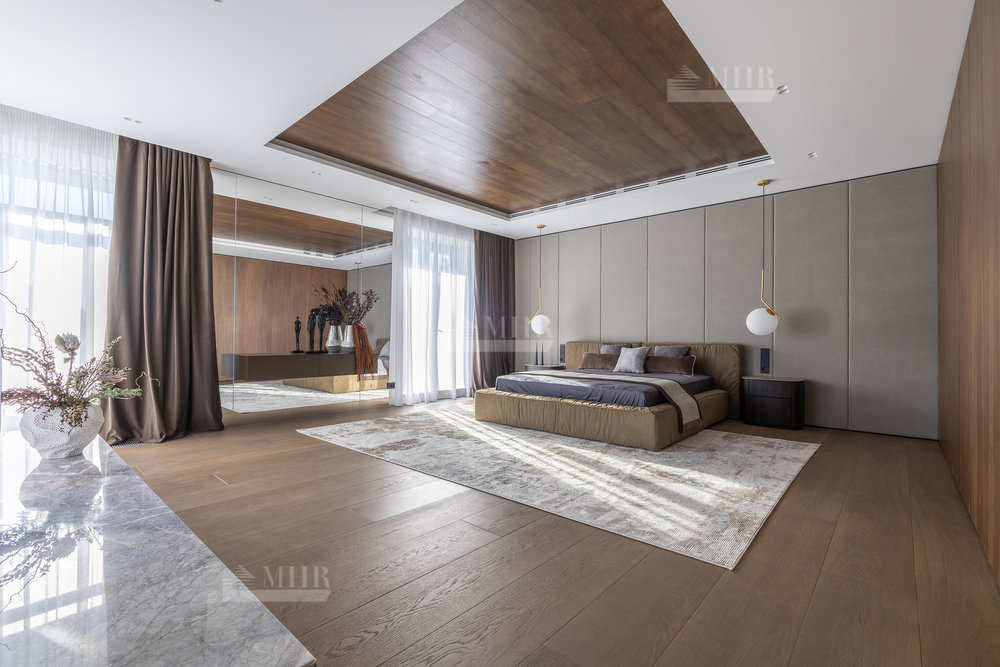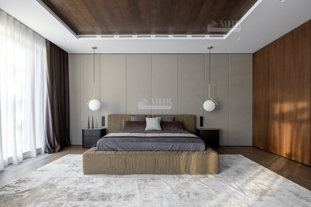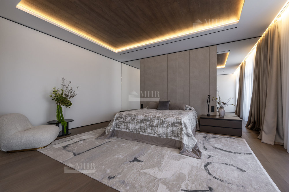 2-й этаж: мастер-спальня с с/у и гардеробной, спальня с с/у-2шт., гардеробная, спальня с гардеробной и санузлом, терраса, блок для персонала.