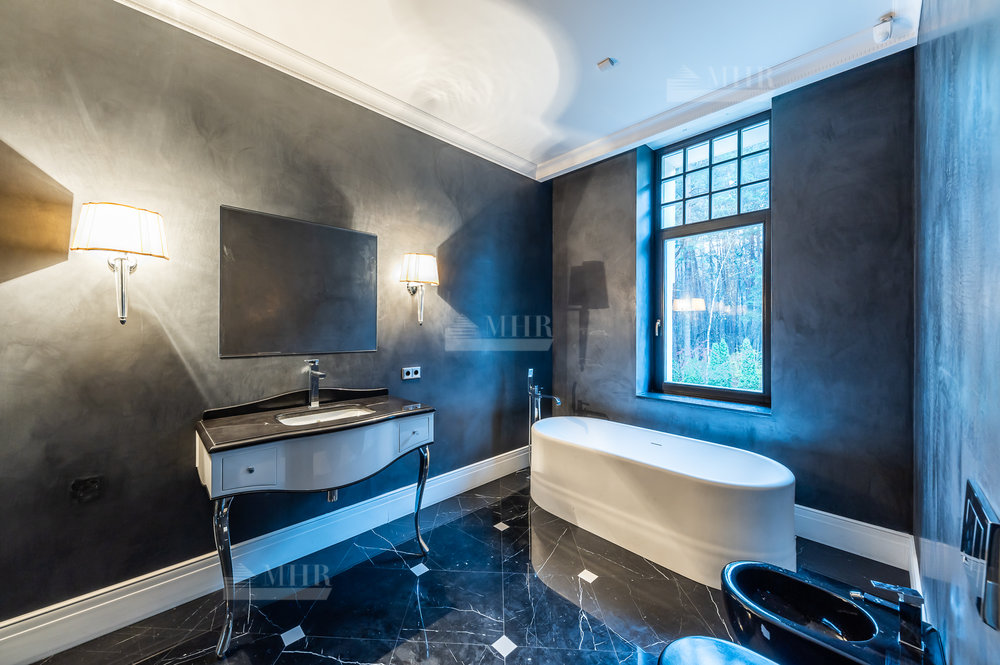 2 этаж: холл, кабинет, ванная комната, хозяйский блок: спальня, 2 гардеробные, ванная комната, терраса, 3 спальни с ванными комнатами.