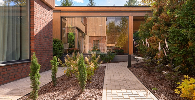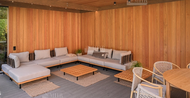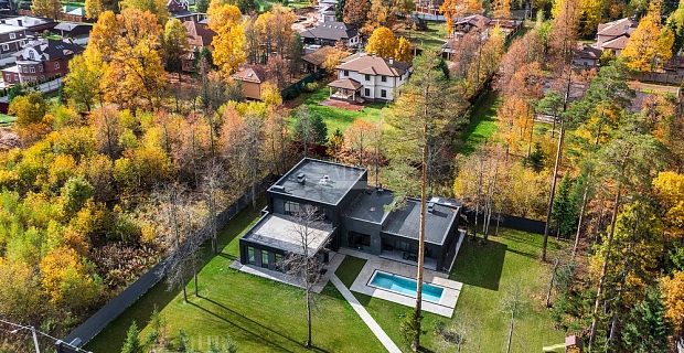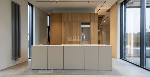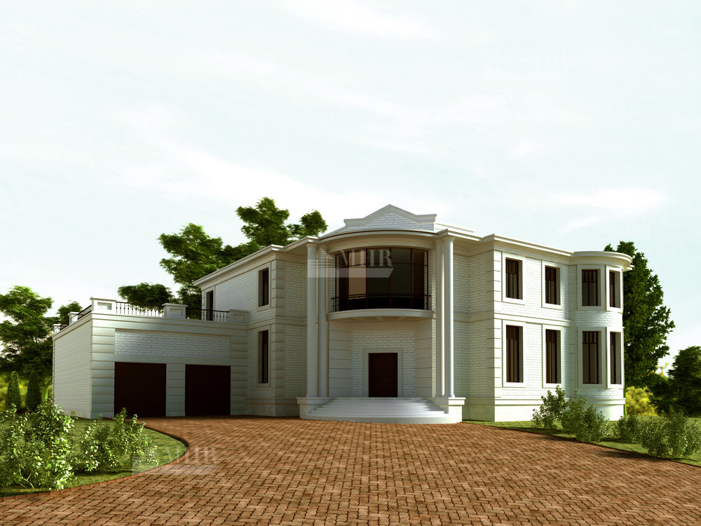 2 этаж: большой холл второго этажа с видом на каминный зал, выход из лифта, зимний сад с прозрачной шахтой лифта и окнами от пола до потолка, большая спальня с туалетной комнатой и гардеробной, кабинет, 2-я спальня с гардеробной и туалетной комнатой и выходом на крышу бассейна и гаража (эксплуатируемая кровля площадью более 130 кв.м., 3-я спальня с туалетом и гардеробом, лестница на мансардный этаж.