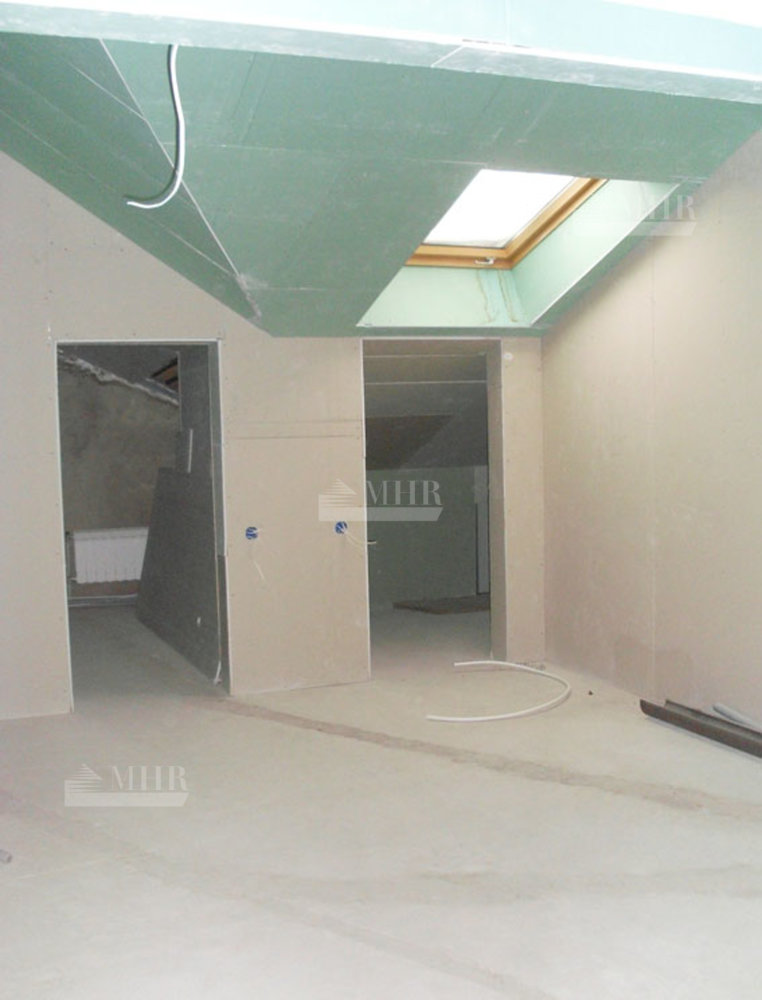 Мансарда: огромное складское помещение, очень большой холл с выходом из лифта, две спальни, каждая с туалетом и гардеробной, большие свободные площади.