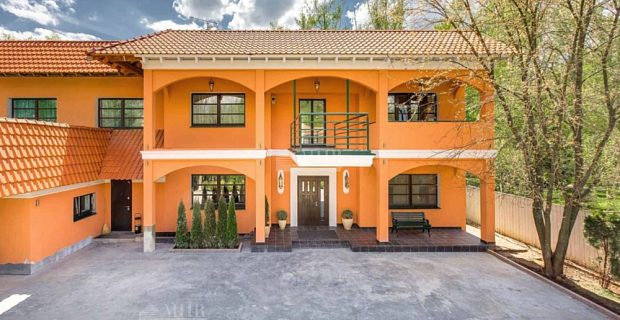1-й этаж: большая кухня-гостиная с выходом на террасу с камином, кабинет-гостевая спальня, парадный с/у, гардеробная, комната для персонала, вторая кухня, 2 просторных холла, котельная, большой гараж на 2 автомобиля;