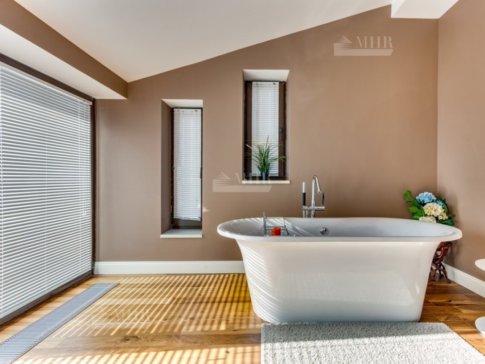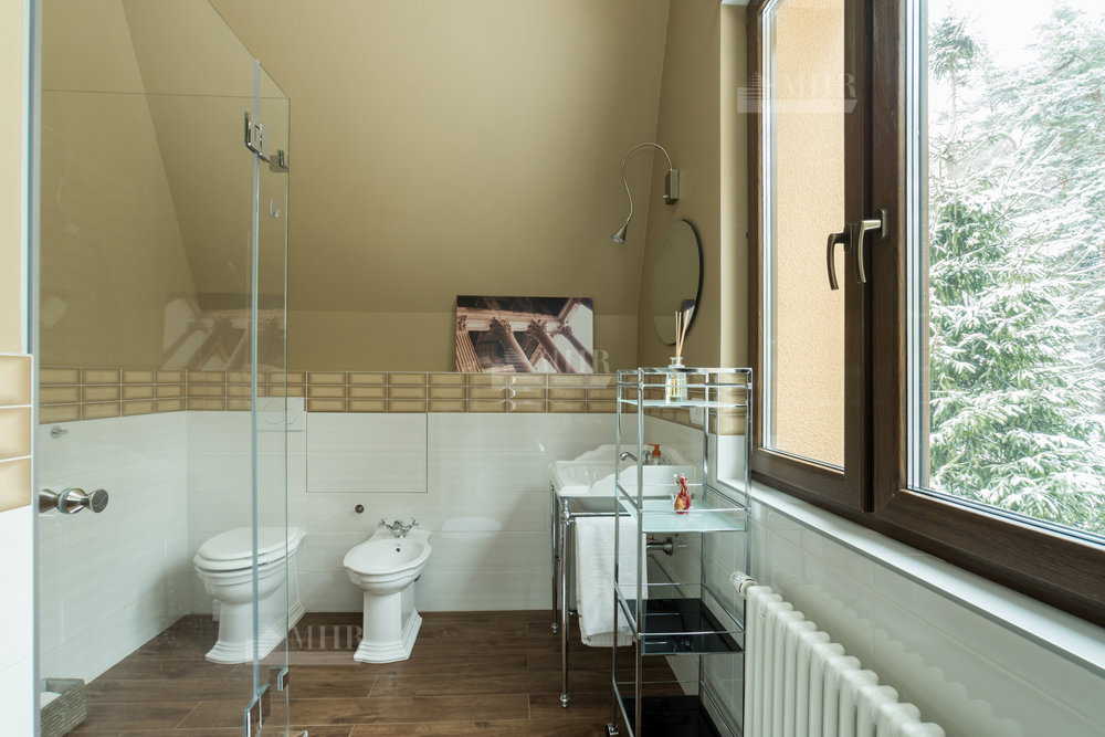 Дом с авторским дизайном. Установлена вся мебель известных европейских брендов, по дому разведен встроенный пылесос. На лесном участке выполнен ландшафтный дизайн, есть летняя беседка с BBQ. Планировка продумана до мелочей для создания комфортной загородной жизни.