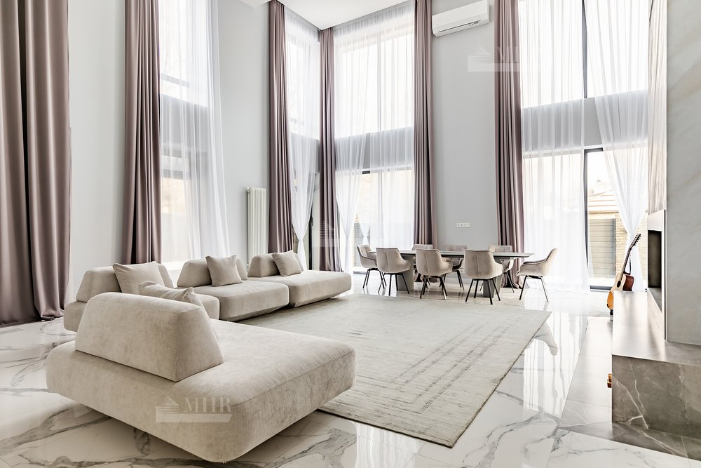 Интерьеры выполнены в светлых тонах, в отделке использованы только самые качественные материалы.