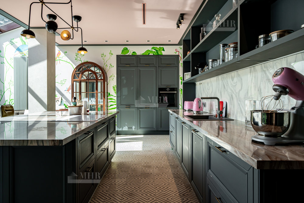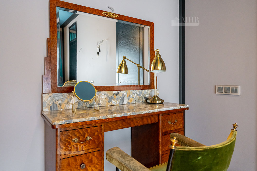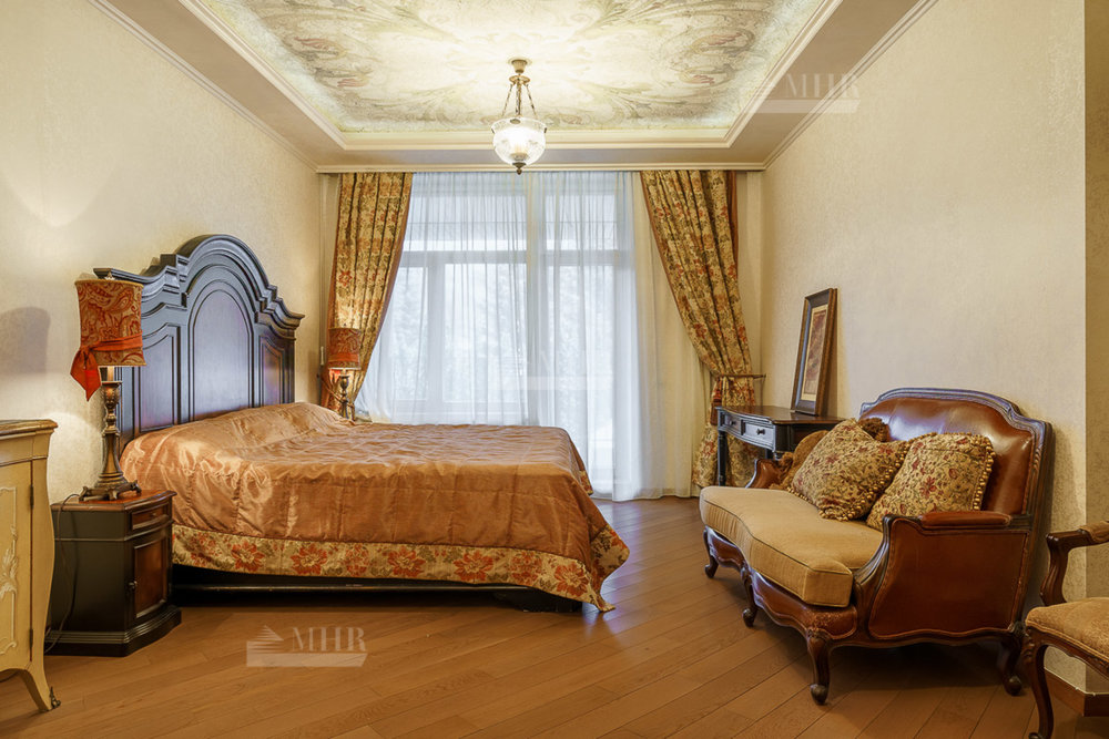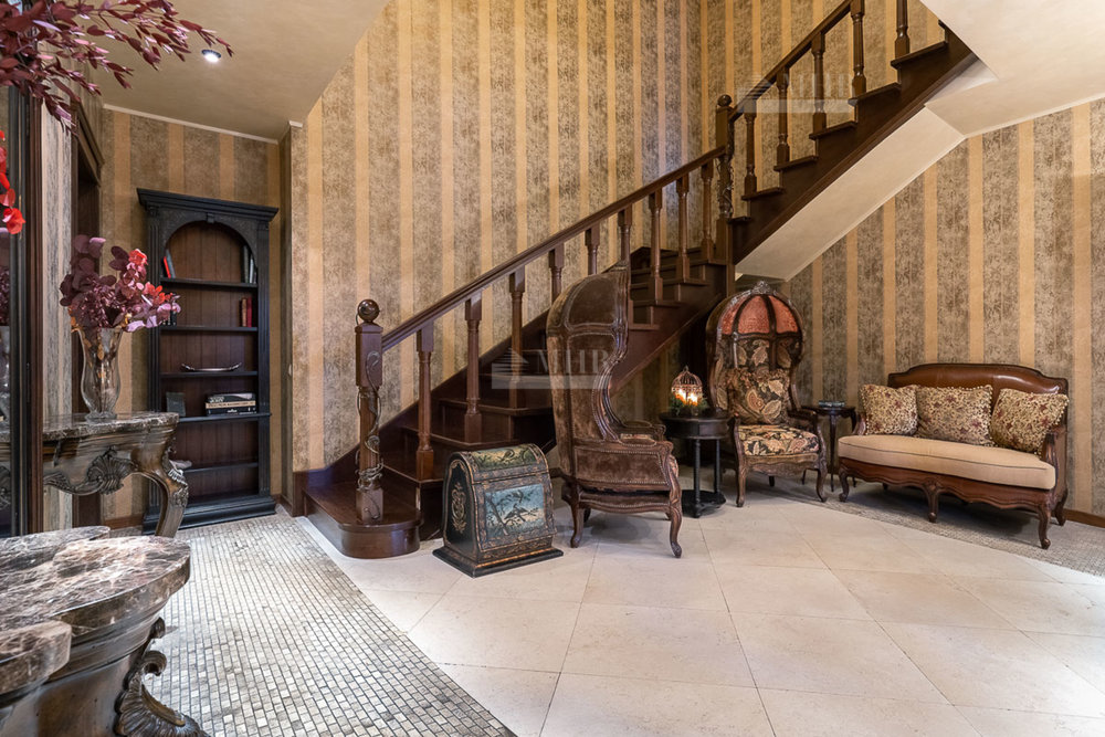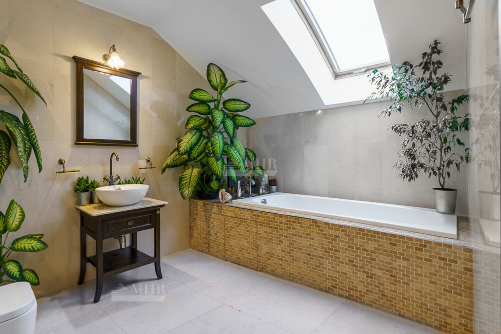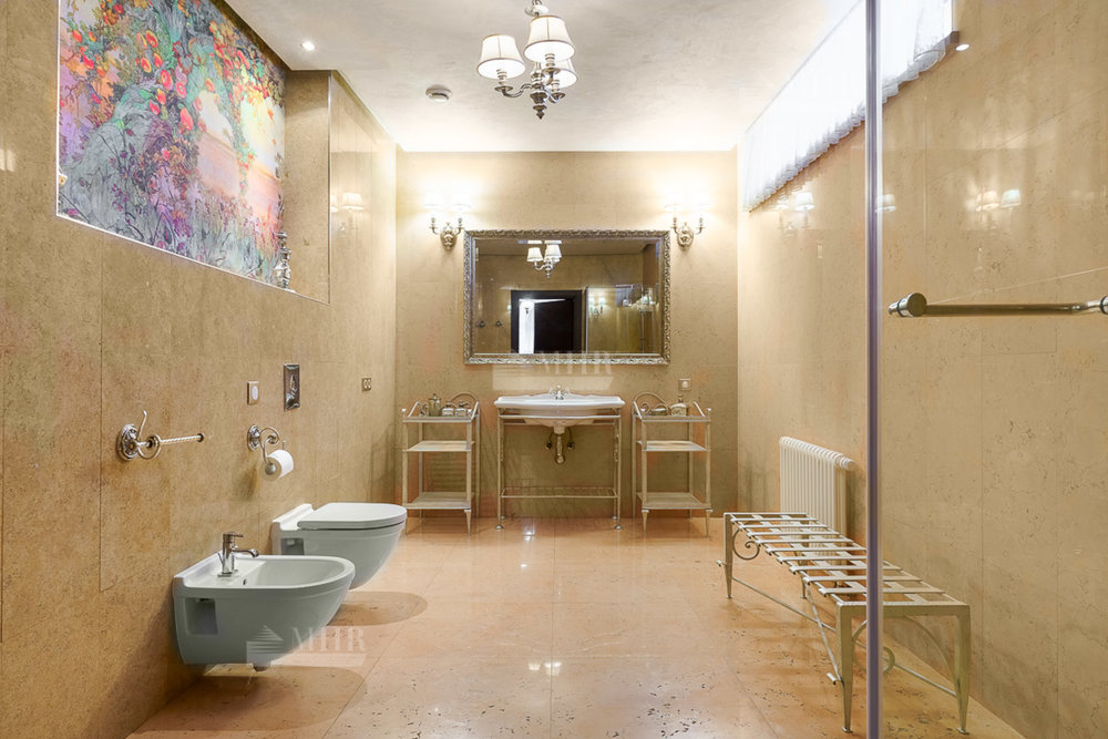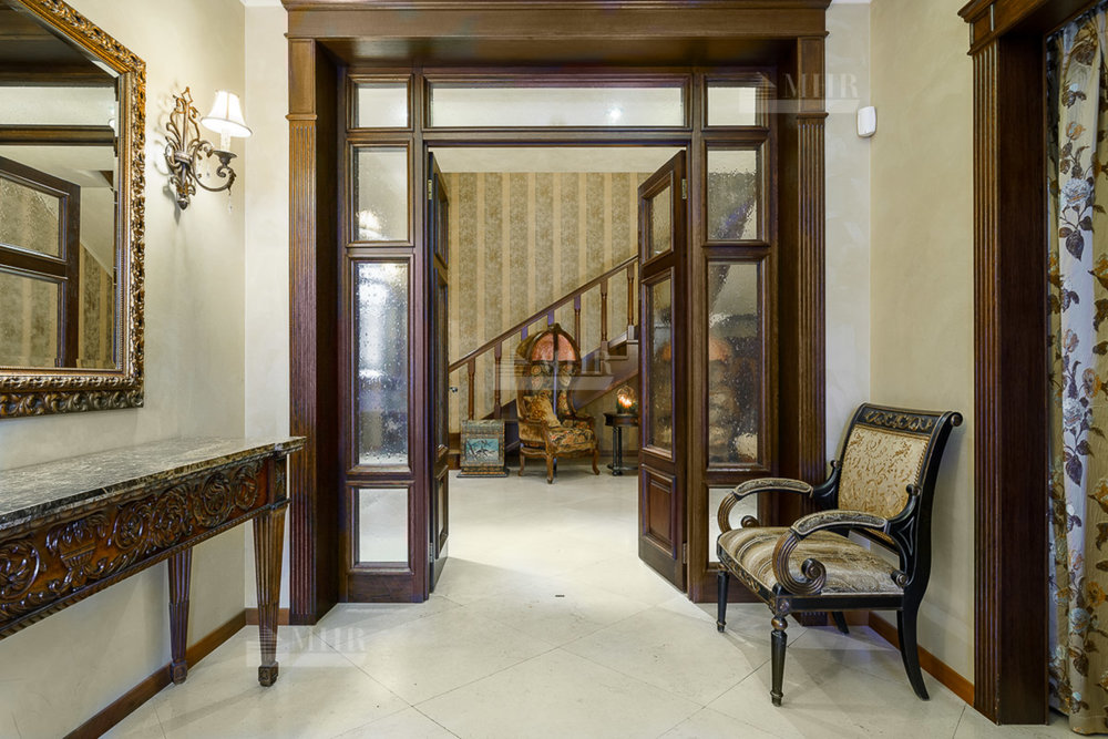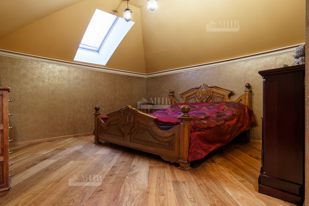 2-й уровень: просторная главная спальня с камином, террасой, гардеробной и санузлом, гостиная-библиотека, детская гостиная, две детских комнаты, вместительные шкафы и санузел.SPA: зона с бассейном и выходом на террасу, сауна, хамам, гостиная с камином для отдыха, две гостевые спальни со своими санузлами.
