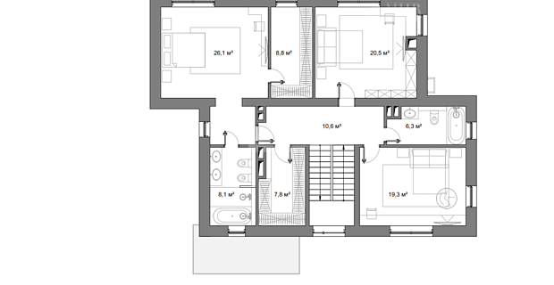 Мансарда: 2 большие комнаты с с/у и гардеробными, комната отдыха.