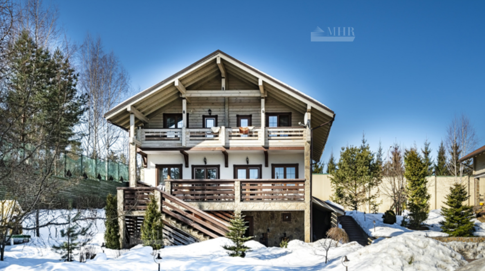 Предлагается на продажу  дом-шале в камерном охраняемом поселке на берегу реки в окружении исчерпывающей инфраструктуры. Дом имеет отличное расположение в поселке, из его спален открываются прекрасные виды. Продуманная планировка дома дает прекрасную возможность комфортно разместить большую семью. В непосредственной близости от поселка располагаются гольф-поля, ресторан, магазины и аптеки.
