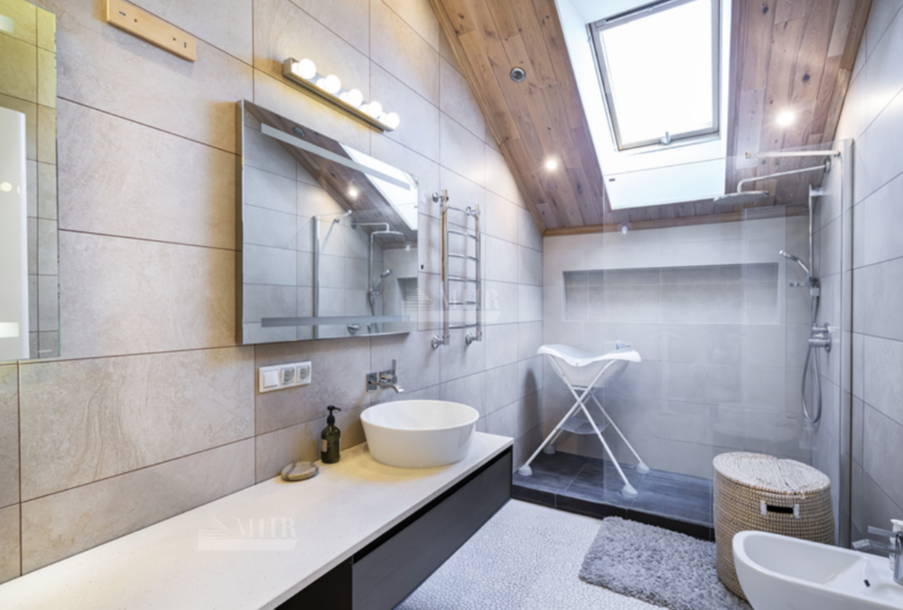 - 1 этаж: гостевая спальня с с/у и гардеробной с выходом на террасу, комната персонала с с/у, сезонная гардеробная, постирочная, котельная.