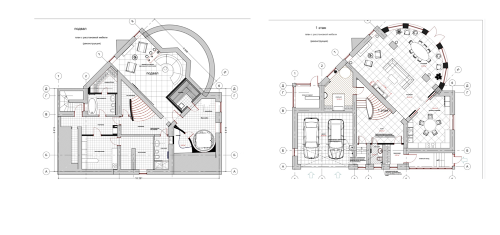 Цоколь: СПА-зона: джакузи, хамам, сауна, зона отдыха с камином, с/у с душевой, постирочная, бойлерная, вентиляционная, помещения для хранения шуб.