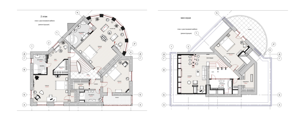 Мансарда: две спальни с гардеробными и один с/у с душевой.