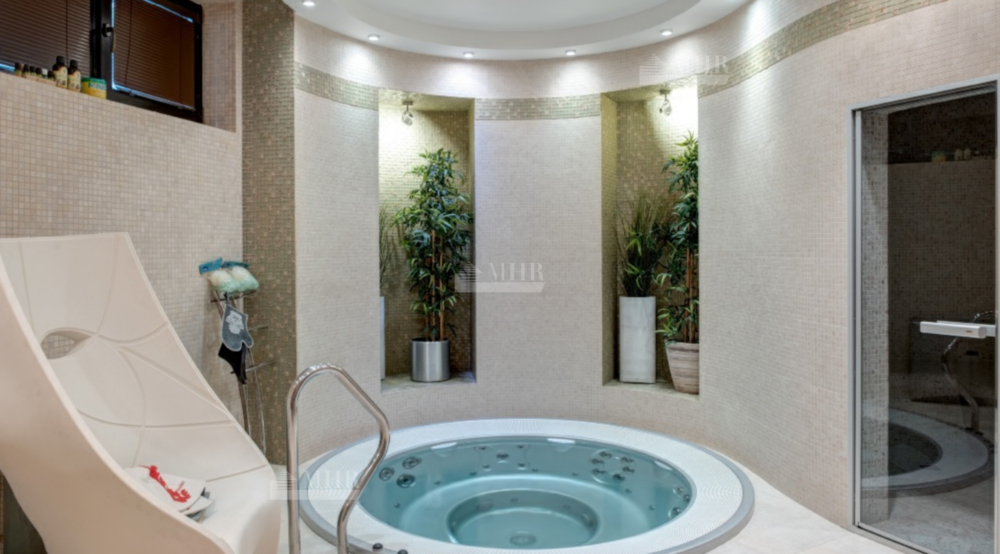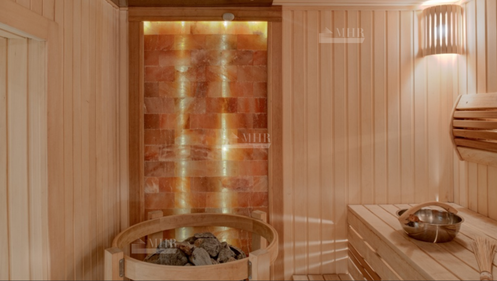 1 этаж: великолепная спа-зона с сауной и хамамом, а также просторная зона отдыха с камином, массажными